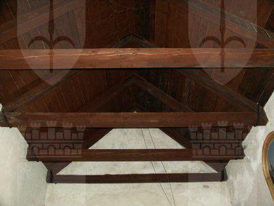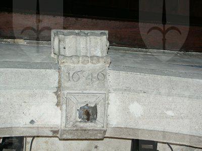 STATUA (esterno) Un elemento scultoreo datato 1895 è opera dello scalpellino Dusak; è posizionato alla sinistra della torre sul fronte principale e raffigura un mendicante. ISCRIZIONE (interno) Sulla chiave di volta di accesso all'abside un'iscrizione ad incisione riporta la data del 1646, probabile data di realizzazione della cappella. ELEMENTI ORNAMENTALI (interno) Le nervature a sostegno della volta dell'abside sono decorate all'imposta da volti di cherubi in pietra, ricavati in altorilievo.