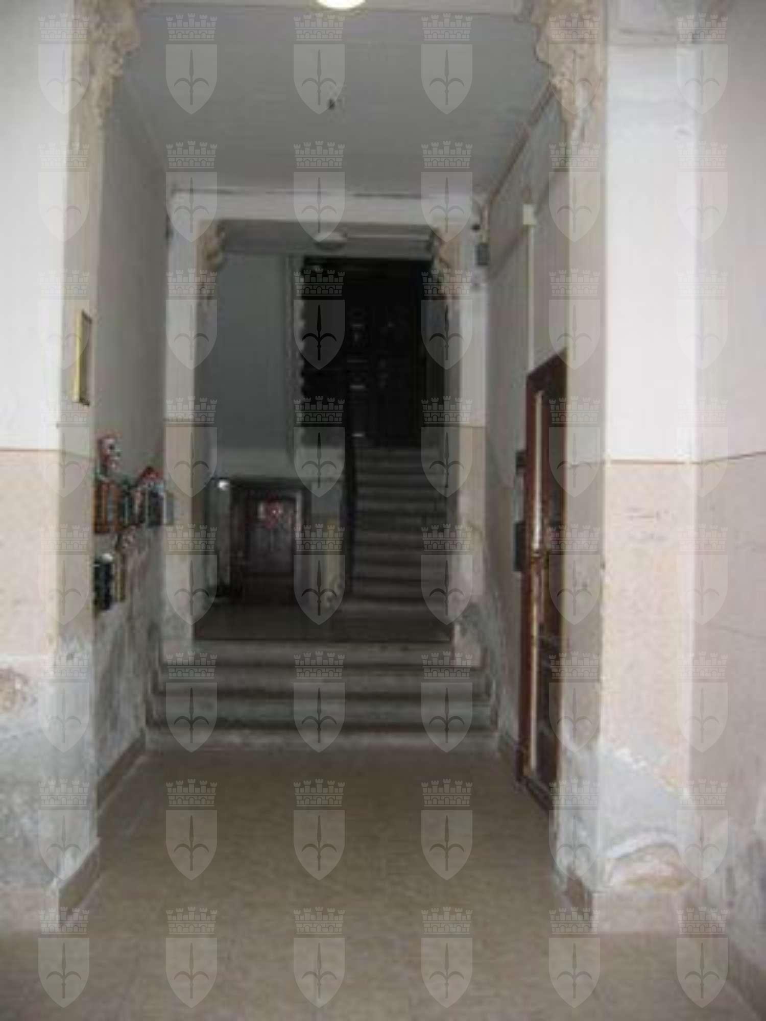 Facciata organizzata su quattro livelli rivestita da intonaco. Basamento protetto nella parte inferiore da lastre bocciardate in pietra; lavorazione a finto bugnato a fasce lisce fino a livello del secondo solaio. Superfici tra secondo e terzo piano rifinite ad intonaco liscio; tra quarto e quinto piano con specchiature in intonaco rustico. Linda aggettante in malta. Fascia marcapiano posta al livello del secondo solaio decorata con pitture zoomorfe mitologiche (Tritoni) di colore ocra su fondo rosso cupo; marcapiano modanato posto all'altezza del quarto solaio. Grondaia metallica e pluviali in pvc rosso esterni alla facciata. Al piano terreno cinque fori porta rettangolari; finestre ai piani superiori architravate. Portone principale con stipiti in pietra naturale, lesene ed architrave sostenuti da mensole a voluta con foglia d'acanto e gocce, ornato superiormente da motivi vegetali; chiave decorata da mascherone in pietra. Fori finestra arricchiti da elementi decorativi in pietra e stucco. In particolare al terzo livello lesene scanalate con architrave e mensoline a voluta; parapetto Liberty in ferro alle finestre del quinto piano. Portone di accesso in legno massello a due ante e due specchiature, con inferriata a motivi Liberty; sopraluce a due specchiature vetrate. Portoni laterali con serramenti non originali in vetro e metallo. Serramenti esterni non originali a due ante in legno verniciato bianco e scuri in legno verniciato marrone chiaro. Atrio di ingresso con pavimentazione in piastrelle marrone chiaro, non originali; alle pareti paraste evidenziate da mensole decorate con ghirlande floreali. Superfici interne trattate ad intonaco liscio bianco con fascia inferiore in toni crema e decorata con disegni ocra a rullo; fascia battipiede in colore rosso cupo; tracce di decorazione trompe l'Sil a conci. Breve rampa con gradini in pietra grigia d'Aurisina bocciardata; corrimano in legno e parapetto in ferro verniciato nero a motivi Liberty; medesimi motivi ripresi nel parapetto in ferro battuto delle finestre del vano scale, con fori finestra incorniciati da pietra d'Aurisina bocciardata e serramenti in legno verniciato bianco. Superfici dei cortili interni rifinite ad intonaco liscio, fori finestra con sola protezione superiore metallica; serramenti non originali di varia tipologia. Sporti di linda in legno. Grondaie metalliche e pluviali in pvc rosso. Piastrellatura non originale al primo ripiano di scala; nei ripiani successivi piastrelle con motivo quadro Liberty a disegni neri e rosso cupo su fondo crema. Serramenti interni di ingresso agli appartamenti a doppia anta in legno massello verniciato marrone scuro.