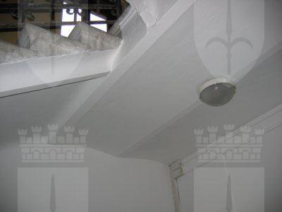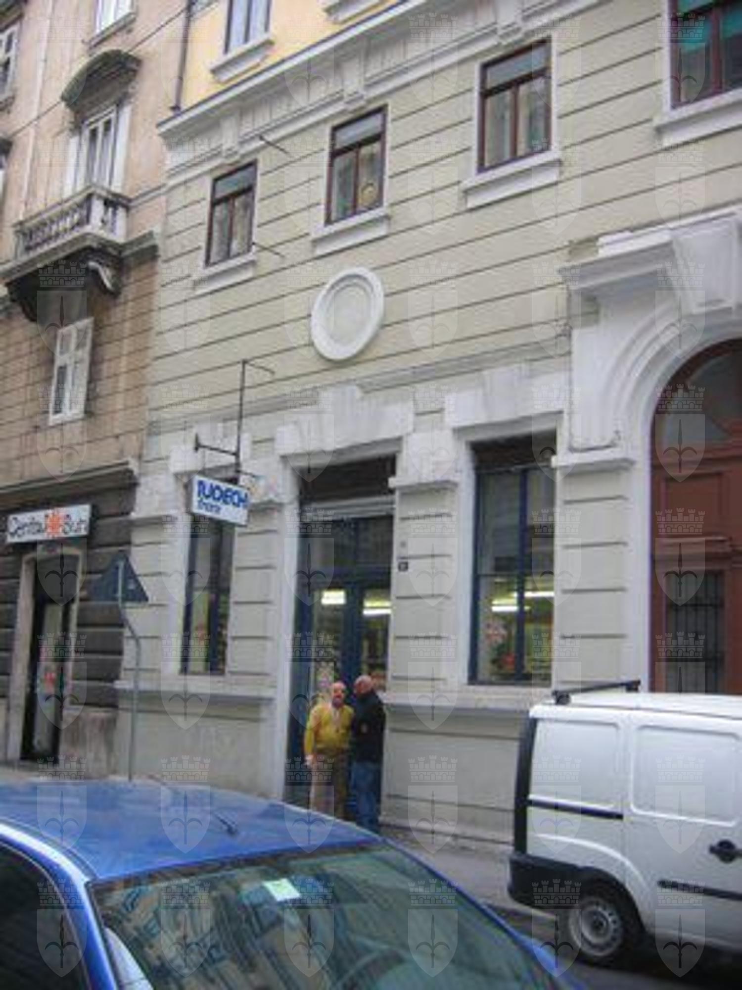 ELEMENTI ORNAMENTALI (esterni): - Targa metallica posta sul lato desto rispetto al portone centrale sopra all'indicazione del civico (Rismondo 040.jpg), dalla datazione non leggibilissima, che riporta la scritta: "ASSICURAZIONI GENERALI - 1831 - TRIESTE". ELEMENTI ORNAMENTALI (interni): - Immagine votiva raffigurante Cristo benedicente (Rismondo 038.jpg), conglobata nell'intonaco della muratura al primo ammezzato del vano scala, con base in legno ed effigie presumibilmente in gesso con finitura colorata.