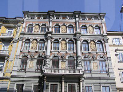 Giovanni Andrea Berlam, nel 1879, realizzò questo edificio sul proprio fondo e con l'intervento anche del figlio Ruggero nell'ideazione della struttura, in particolare per quanto riguarda il prospetto principale. Nel 1886 fu presentato all'Ufficio tecnico comunale un progetto di ampliamento dello stabile con un corpo a due piani, indicato come "Edificio con Pinacoteca". Dal 1887 l'edificio ospitò la sede del Circolo Artistico di Trieste e, fino alla prima guerra mondiale, il Conservatorio Giuseppe Verdi. Gli elementi architettonici riferibili ad esempi medievali e rinascimentali, quali la ricca decorazione della superficie parietale, si devono all'idea del venticinquenne Berlam. La facciata su Via Carducci è arricchita da colonne e lesene, archi a tutto sesto e motivi decorativi quali ghirlande, festoni e gruppi scultorei.