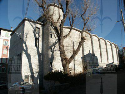 Il fabbricato si colloca ai margini del rione di San Luigi e presenta volumetria e pianta anomale per il contesto urbanizzato in cui si colloca, ma confacenti al tipo di funzione prevista. In tutto molto simile a quella di un edificio di culto, la composizione del progetto detta linee spiccatamente razionaliste non del tutto rispettate nella fase esecutiva. La struttura a due livelli, di cui uno parzialmente interrato, è realizzata in calcestruzzo armato e permette la realizzazione di due grandi aule sovrapposte, che occupano la larghezza dell'intero corpo edilizio. Le funzioni accessorie sono ospitate nei corpi secondari ben denunciati anche formalmente nella composizione dei volumi.