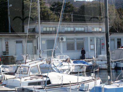 L'edificio monopiano si colloca ai margini dell'interramento di barcola-bovedo e si affaccia direttamente sul porticciolo. La pianta rettangolare allungata espone i lati maggiori a sud-ovest allo specchio acqueo ad a nord est sulla Via Almerigo Grilz e quindi sul giardino retrostante. La struttura in cemento armato presenta una copertura piana con un sopralzo centrale, che permette una migliore illuminazione del vano corrispondente alla sede di un circolo privato. I rimanenti spazi sono suddivisi in piccoli magazzini utilizzati per il deposito delle attrezzature da lavoro dei pescatori.