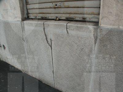 Il fabbricato è caratterizzato da una sottile pensilina realizzata a sbalzo proprio a partire dall'architrave dei fori commerciali del fronte principale e realizzata a protezione di tutto il fronte principale rivolto ad ovest e di parte del lato corto rivolto a nord. Il manufatto è rivestito ad intonaco color bianco verdastro; presenta un abbassamento in pietra artificiale a finitura graffiata a protezione della parte bassa della muratura e a rivestimento dei pilastri che ritmano i fori di ingresso ai locali commerciali. La pensilina intonacata in colore bianco all'intradosso è perimetrata da una mantovana in lamiera verniciata colore grigio, che delimita anche tutto il perimetro della copertura con manto in guaina ardesiata. I grandi serramenti vetrati in legno verniciato sono protetti da avvolgibili metallici, mentre le finestre prospettanti sulle facciate laterali sono in legno, protette da inferriate a maglia quadrata in ferro verniciato.