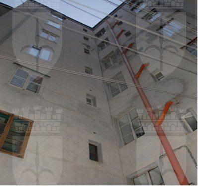 Contemporaneo ad altri sei complessi immobiliari del medesimo isolato, l'edificio viene costruito nella zona di recente urbanizzazione creata dallo sbancamento dei terreni ai piedi del colle di Scorcola; l'area, interessata dalla metà dell'Ottocento dai lavori per la realizzazione della nuova ferrovia cittadina, viene arricchendosi di numerosi edifici multipiano, caratterizzati da un'architettura modernista, essenziale nello sviluppo planimetrico e ricca nella decorazione delle superfici murarie. Il palazzo si affaccia su via Udine, già via Belvedere a ricordo della omonima proprietà distrutta per fare spazio ai nuovi edifici signorili a destinazione residenziale. Il progetto dell'edificio, approvato nel 1905, reca le firme dell'impresa costruttrice "Gobel & Forti", proprietaria del fondo e del "costruttore edile autorizzato" Ferdinando Walenta. In linea con la tipologia architettonica dei coevi palazzi del quartiere, la struttura presente cinque piani fuori terra più soffitta abitabile. La superficie muraria, con basamento rivestito a bugnato liscio, è arricchita da elementi decorativi a rilievo di chiara ascendenza Liberty; motivi floreali e nastri sono collocati in corrispondenza delle specchiature e delle cornici dei fori finestra. L'immobile ha ospitato fino a pochi anni fa la caserma della Guardia di Finanza.