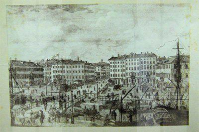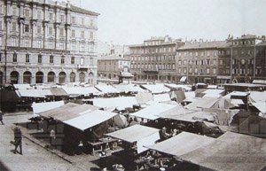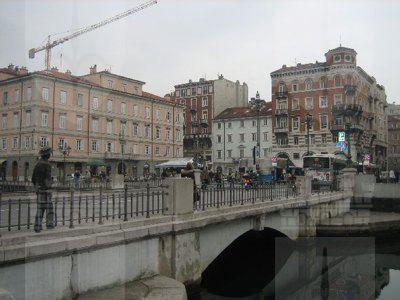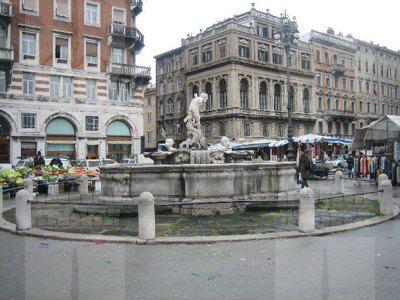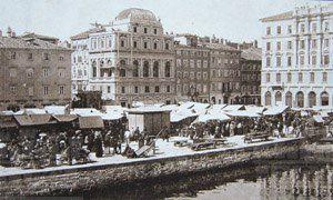 La zona delle antiche saline, a ponente delle mura della città medievale, demolite, per volere dell'imperatrice Maria Teresa d'Austria nel 1749, cominciò ad essere bonificata già a partire dagli inizi del XVIII secolo. Il progetto del suo totale interramento si concretizzò a metà del 1700, allorquando la sovrana cedette al Comune di Trieste i fondi su cui erigere la futura città che, in suo onore, fu chiamata "Teresiana". Il vasto terreno paludoso, nel suo tratto prospiciente il mare, era attraversato all'epoca da tre canali di diversa ampiezza: uno, detto del Vino o Piccolo, lungo un centinaio di metri ed interrato per motivi igienici nel 1816, si inoltrava dentro Piazza della Borsa spingendosi fino al cuore di Piazza Vecchia attraverso l'odierna Portizza. Uno medio, corrispondente, all'incirca, all'attuale canale che dalla chiesa di S. Antonio Nuovo conduceva fino al mare e che accoglieva le acque di due torrenti ed infine un terzo, più corto degli altri due. Tutti e tre questi canali erano accessibili alla navigazione di piccolo cabotaggio a servizio delle saline. Allorquando si stabilì di bonificare l'area, per permettere alla città di espandersi territorialmente in virtù della sua crescita demografica, si prese in considerazione il progetto di interrare il più piccolo allargando invece il medio, rendendolo agibile a bastimenti di stazza maggiore e conservando pure quello del Vino per imbarcazioni minori. Per ordine di Maria Teresa, il 14 ottobre 1756, il Canal Grande, l'unico, di fatto, rimasto, venne ampliato e dotato di sponde murate sotto la direzione dell'arch. Matteo Pirona al costo di 90.000 fiorini. Inizialmente lungo le sponde furono piantati degli alberi, successivamente tolti per probabili motivi di ordine pratico, intralciando, con la loro presenza, le operazioni di ormeggio nonché quelle di carico e scarico delle navi. Largo 28,4 metri, il corso d'acqua era attraversato da due ponti di ferro mobili: il cosiddetto Ponte Verde, all'imboccatura del canale, posizionato nel 1858 e il più noto Ponte Rosso, che metteva in comunicazione l'omonima piazza con l'allora Via delle Poste, collocato nel 1831 ed eseguito nelle officine dei fratelli Strudthoff in sostituzione di uno di legno di colore rosso appunto. L'enorme quantità di terra ricavata dall'ampliamento del canale servì invece da basamento per un terrapieno utilizzato per piccoli scambi commerciali in prossimità del ponte. Fu proprio quel terrapieno a trasformarsi nella futura Piazza del Ponte Rosso. Lo spazio fu regolarizzato e concepito nelle sue forme architettoniche da Gianantonio Tognana già nel 1776, derivando il suo appellativo proprio dal colore del ponte che costituiva il passaggio obbligato tra la città vecchia e quella nuova. La sua posizione strategica, prospiciente il punto di approdo delle navi e al crocevia di importanti vie di comunicazione, rese la piazza uno dei punti di incontro più dinamici dal punto di vista commerciale e mercantile, divenendo ben presto sede di un vivace mercato ortofrutticolo. Piazza del Ponterosso fu, sin dalla sua iniziale creazione, un'ampia piazza quadrangolare circondata da numerosi edifici di gran pregio architettonico, le cui prime registrazioni tavolari risalgono al 1789. Tagliata a metà dall'odierna Via Roma, lo spazio presenta sul lato a settentrione una fontana a tre bocche rappresentante una rupe sul cui vertice poggia un genio fluviatile. L'opera risale al 1751 su progetto dello scultore Francesco Mazzoleni, creatore della fontana dei Quattro Continenti di Piazza Unità d'Italia. Familiarmente nota come fontana del "Giovanin", in onore del puttino che la sormonta, la fontana attingeva l'acqua direttamente dall'acquedotto teresiano fatto costruire dall'imperatrice a metà del 1700 incanalando le acque provenienti dalle alture di S. Giovanni. Ingentilivano la piazza, non solo la fontana del Puttino, ma anche un chiosco in muratura e ferro destinato ad ospitare un corpo di guardia ed alcuni gabinetti pubblici in ghisa decorata. La regolazione della contrada del Canal Grande risale al 1821, allorquando l'Ufficio delle Civiche Fabbriche approvò il progetto di lastricazione dell'area. La pavimentazione, in grossi blocchi di masegno, venne disposta a spina di pesce nella zona centrale, a correre lungo il sedime delle strade. La struttura della piazza rimase invariata nella sua sostanza fino alla metà del XX secolo. Durante lo stravolgimento della viabilità stradale negli anni '50, l'antico lastricato venne, infatti, ricoperto con un manto di asfalto. Si colse allora l'occasione per interrare i servizi igienici. Sulla piazza fanno bella mostra di sé alcuni tra i più eleganti edifici triestini come, ad esempio, la monumentale sede della Banca Nazionale del Lavoro, insediatasi dal 1928 nell'edificio costruito per il commerciante Alessandro Genel nel 1873. Oppure gli edifici posti agli angoli con Via Roma: al numero civico 3, il palazzo opera di A. Bacicchi, risalente al 1882; al numero civico 4, il fabbricato noto con il nome di casa Allodi con la sua originale torretta ottagonale risalente al 1913, progettato dall'arch. O. Sonetti e che ospitò, durante gli anni Trenta, l'Hotel Centrale.