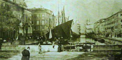 La zona delle antiche saline a ponente delle mura della città medievale, demolite, per volere dell'imperatrice Maria Teresa d'Austria nel 1749, cominciò ad essere bonificata già a partire dagli inizi del XVIII secolo concretizzando il progetto del suo totale interramento allorquando la sovrana cedette al Comune i fondi su cui erigere la futura città Teresiana. Il vasto terreno paludoso più vicino al mare era attraversato, all'epoca, da tre canali di diversa grandezza accessibili alla navigazione di piccolo cabotaggio messo a servizio delle saline: uno, detto del Vino o Piccolo, lungo un centinaio di metri interrato per motivi igienici nel 1816. Uno medio, corrispondente pressappoco all'attuale canale che dalla chiesa di S. Antonio Nuovo conduce fino al mare ed infine un terzo, più corto degli altri due. Quando si stabilì di bonificare l'area, si prese in considerazione il progetto di interrare il più piccolo, allargare il medio (rendendolo agibile ai bastimenti di stazza maggiore) e conservare il canale del Vino. Per ordine di Maria Teresa, il 14 ottobre 1756, il Canal Grande venne ampliato e dotato di una sponda murata sotto la direzione dell'architetto Matteo Pirona al costo di 90.000 fiorini. Inizialmente lungo le sponde furono piantati degli alberi, immantinente tolti per probabili motivi di ordine pratico, intralciando l'ormeggio dei bastimenti ed il transito delle merci. Largo 28,4 metri, il corso d'acqua era attraversato da due ponti di ferro mobili: il cosiddetto Ponte Verde e il più noto Ponte Rosso, che metteva in comunicazione l'omonima piazza con l'allora Via delle Poste. Nel 1769 venne eretta, nel tratto antistante la parte terminale del Canal Grande, una chiesa barocca dedicata a S. Antonio che, come ci ricorda il Generini, fu costruita con il "peculio di pii benefattori ad iniziativa dei fedeli dell'antica confraternita dei nobili addetta alla chiesa volgarmente nota per S. Antonio vecchio". Lo spazio compreso tra il nuovo fabbricato ed il canale prese quindi il nome di Piazza S. Antonio. La chiesa fu restaurata nel 1784 e, ritenuta non più consona alle mutate situazioni demografiche, fu demolita e sostituita, nel 1827, con l'attuale edificio progettato dall'architetto Pietro Nobile. Il nuovo tempio, consacrato dal vescovo Bartolomeo Legat, fu officiato per la prima volta il 3 aprile 1842, ma completato appena nel 1849. Allorquando i lavori di fabbricazione dell'edificio erano in fase di ultimazione, si decise di portare a termine anche il progetto di sostituzione del vecchio selciato nella parte antistante la chiesa. La lastricazione della Contrada di S. Antonio avvenne, infatti, in periodi successivi, tra il 1820 ed il 1835, allorquando tutta l'originaria pavimentazione della città venne sostituita con delle pietre più regolari ed ordinate. Nel 1820 Il Consiglio comunale aveva perfino avvallato un progetto di modifica delle ruote dei carri addetti al trasporto delle merci da un magazzino all'altro, di modo che la pavimentazione del nuovo lastricato non potesse esser compromessa. Nel 1824 il Comune decretò anche la costruzione di una ringhiera di ferro battuto da sistemarsi sulla testa del canale, proprio dirimpetto alla facciata della chiesa. Ma la demolizione del vecchio edificio e il notevole rallentamento dei lavori del nuovo, di fatto, condizionarono l'effettiva selciatura dell'area prospiciente la chiesa stessa che, ingombra delle travature di legno a protezione del nuovo fabbricato, impedirono per un bel pezzo la possibilità di posare le nuove pietre. Nel 1832 parte dei lavori dovevano però essere ultimati, se è vero che il Comune dovette fare espressa richiesta all'imprenditore Valentino Valle, responsabile della pavimentazione, di abbattere, sulla Piazza del Ponterosso, il casotto eretto per "comodo delli lavori da tagliapietre della nuova chiesa di S. Antonio, casotto lì da quasi 5 anni". Le "Condizioni d'incanto" del 1830, relative alla pavimentazione della piazza precisavano, inoltre, che le pietre del vecchio selciato non dovevano essere buttate via, ma trasportate fino al Borgo Giuseppino, sulla riva del mare, per "proseguire il nuovo quais". Nel 1934 si diedero avvio a quei lavori di interramento del canale che portarono Piazza S. Antonio ad assumere l'odierna fisionomia: una fontana centrale al posto dell'acqua e sei aiuole fiorite da contorno. Utilizzando il materiale proveniente dalle demolizioni di Cittavecchia, l'ultimo tratto dell'antico corso d'acqua piano piano scomparve. Il nuovo spazio che ne derivò prese il nome di Piazza Umberto I. Tra le curiosità degne di nota figura quella dell'interramento, all'interno del canale, di una torpediniera austriaca che, trovandosi lì ormeggiata da tempo e ormai fuori uso, venne ricoperta dal materiali di riporto, una volta adagiatasi su un fianco. Giace ora sotto la fontana, testimone silente di un passato ormai dimenticato. Dando le spalle alla chiesa, sul lato sinistro vale la pena di sottolineare la presenza di un altro edificio di interesse storico e sociale di non secondaria importanza: il Caffè Stella Polare. Nel 1900 a causa dei lavori di ristrutturazione della Casa della Comunità Serbo ortodossa, il Caffè, lì ospitato, venne chiuso, si pensò allora di erigere un fabbricato provvisorio, in cemento e legno, che fu ubicato proprio di fronte alla chiesa nello spazio davanti al canale. Ebbe forme secessioniste e durò alcuni anni sino all'inaugurazione del nuovo palazzo progettato dall'ingegner C. Cambiario nel 1902. Durante gli anni Quaranta e Cinquanta la piazza fu utilizzata come parcheggio autovetture.