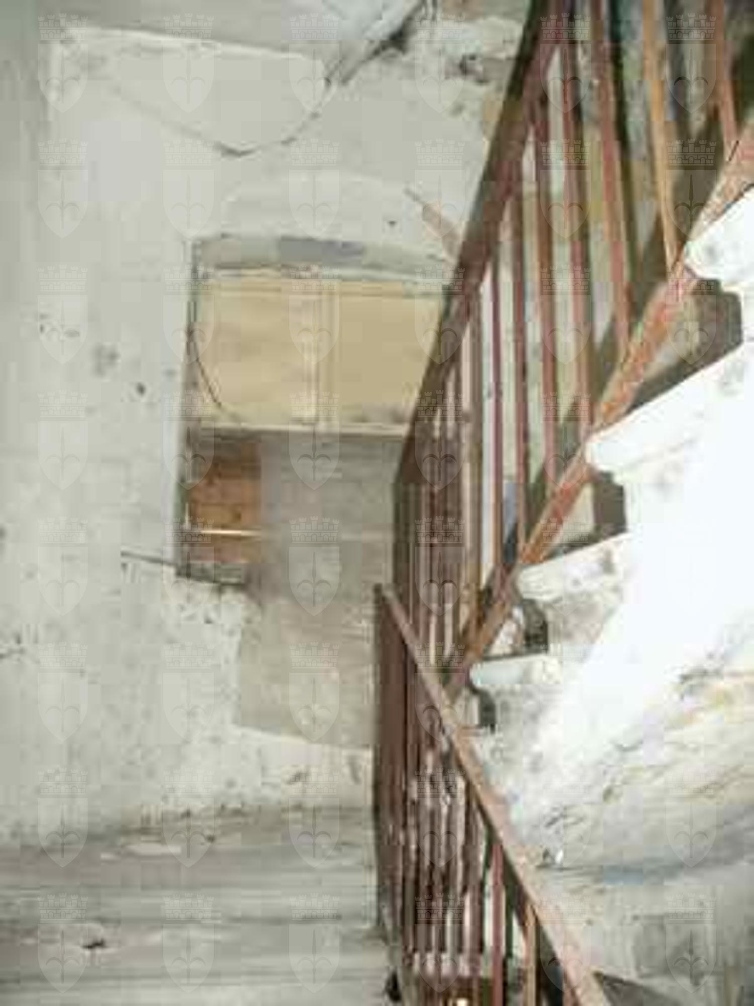 FACCIATA SU VIA BECCHERIE Basamento in pietra bianca bocciardata, rivestimento della fascia al piano terra in pietra bianca bulinata in corrispondenza del locale commerciale. Fori al piano terra con cornici arcuate in pietra bianca bulinata, decorate da chiavi di volta con volute in pietra. Architrave orizzontale sviluppato su tutta la lunghezza di facciata. Al centro un'iscrizione parzialmente leggibile (forse "MACELLERIA"). Sopraluce protetti da inferriate in ferro battuto. In corrispondenza del sopraluce del foro centrale, una lanternina in ferro battuto ed un'iscrizione recante la data 1851 (Pict0001.jpg). Banchina su mensole squadrate in pietra bianca a livello del primo orizzontamento, a protezione dell'ingresso al locale commerciale. Superficie di facciata trattata ad intonaco con marcapiano intonacato in corrispondenza del solaio del terzo piano. Serramenti oscuranti esterni in legno uso Trieste, montati su cornici in pietra bianca bulinata, con architrave a mensola al primo piano, architrave semplice ai piani superiori. Gronda e pluviale in lamiera. FACCIATA SU ANDRONA DEL PANE: Facciata trattata ad intonaco su tutta l'altezza. Fori architettonici con cornici semplici in pietra bianca bulinata. Porta di ingresso al piano terra in legno massello verniciato. Serramenti esterni dei piani superiori in legno senza oscuranti, ad otto specchiature con apertura a ghigliottina. INTERNO Scala con pianerottoli e gradini in lastre di pietra bianca bulinata e corrimano in ferro. Serramenti interni lignei e pavimenti in doghe di legno.