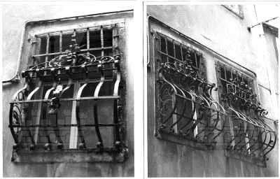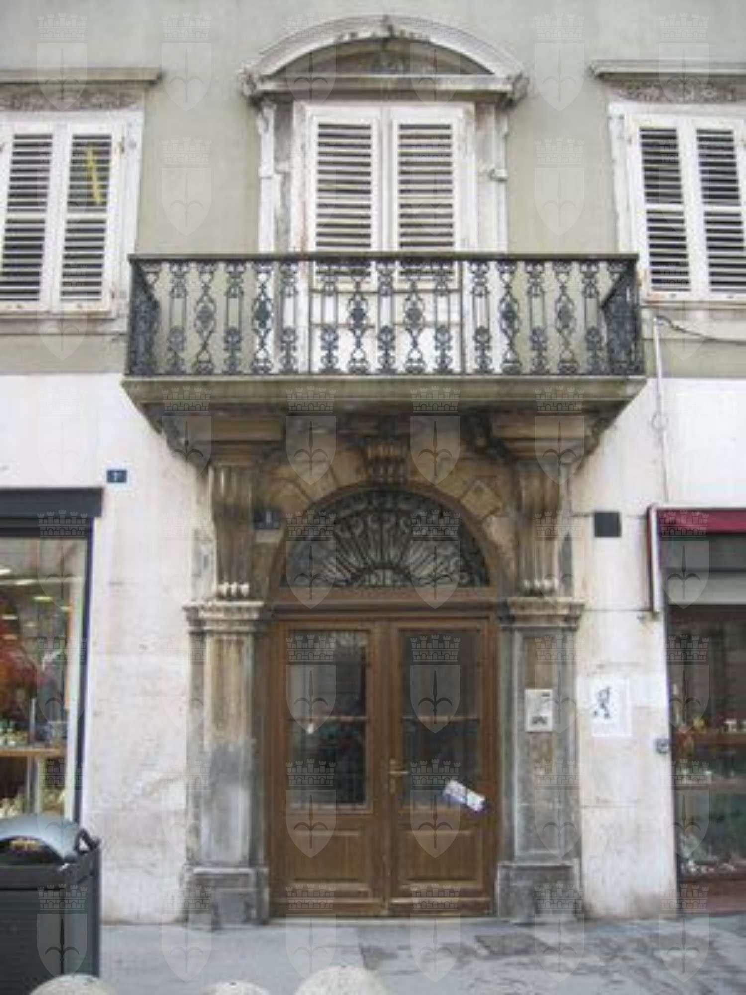 ELEMENTI ORNAMENTALI (esterno): Decorazioni con motivi floreali e vegetali a livello dei capitelli delle lesene e delle trabeazioni dei fori finestra FREGIO (esterno): Fregio decorato da motivi vegetali sotto lo sporto di linda BALCONE (esterno): Balcone con parapetto in ferro battuto al primo piano MENSOLE (esterno): Mensole a voluta in pietra bianca a sostegno dal balcone in ferro battuto