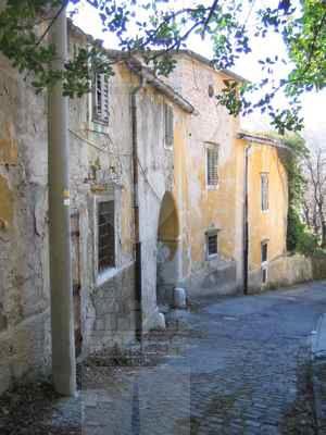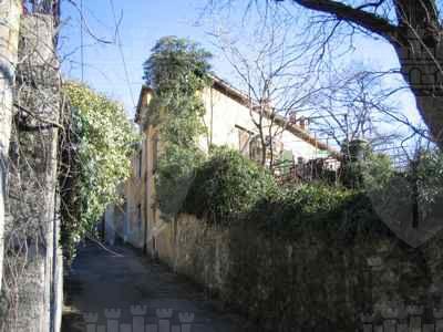 Il fabbricato si affaccia su Vicolo dei Roveri che, da Via Giulia, si diparte verso Nord seguendo l'iniziale pendio del monte Valerio. Presenta un affaccio su strada; il lotto è delimitato da un muro a secco. Fabbricato composto da tre corpi edilizi a due e tre livelli; l'accesso alle due ali laterali e al parco retrostante avviene attraverso un ampio portale. Strutture verticali in muratura portante di pietra arenaria mista a laterizio. Solai in travi lignee con interventi puntuali di consolidamento in profilo metallico. Copertura a falde inclinate con struttura lignea e manto di copertura in coppi curvi rossi. Fabbricato di campagna ottocentesco composto da più volumi.