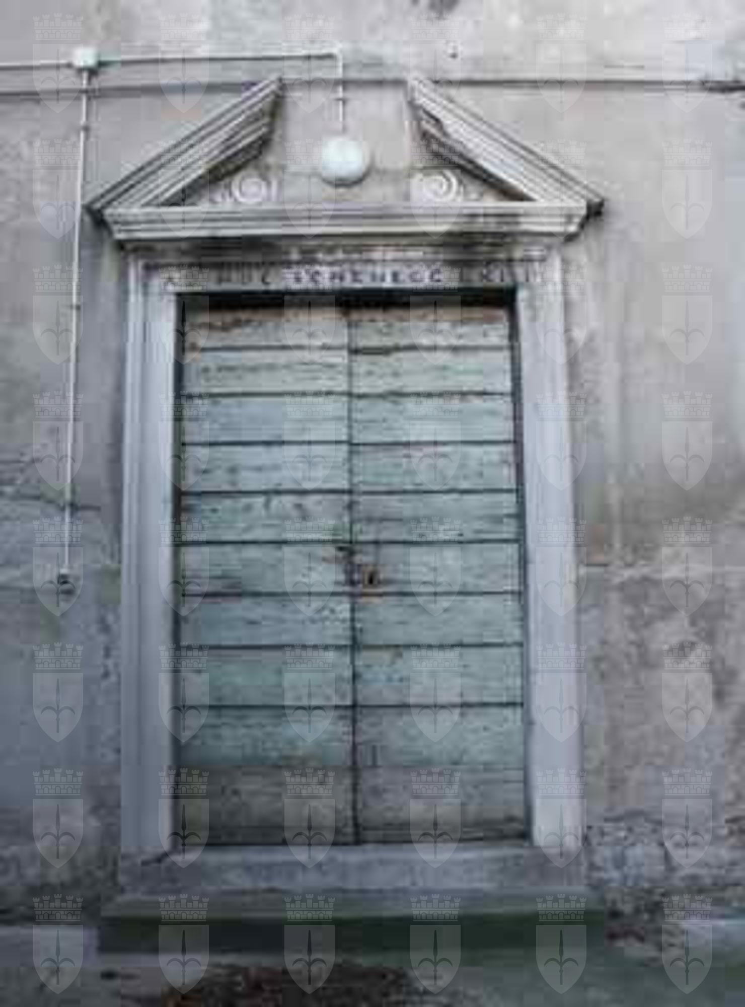 ISCRIZIONE (esterno): Sull'architrave sopra al portale d'ingresso (PICT0227.JPG) al cortile interno, iscrizione incisa "A.D. MDC SCHENEGG LXIII". ELEMENTO ORNAMENTALE (esterno): Timpano triangolare modanato in pietra bianca con all'interno decorazione spiraliforme trattata a fresco su intonaco.