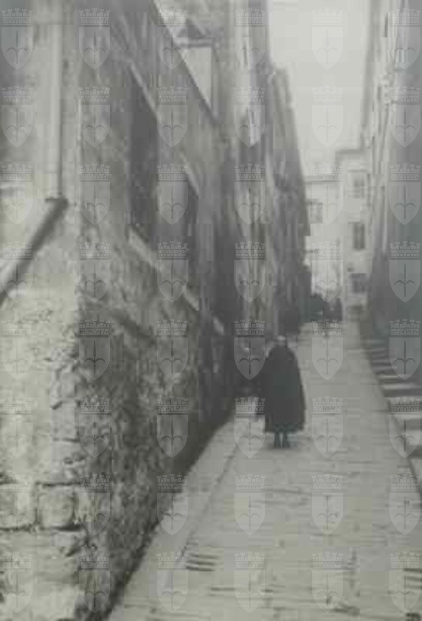 Corpo edilizio settecentesco posto alle pendici del colle di S. Giusto, integrato nel borgo della città vecchia. Sviluppo su due piani fuori terra, più sottotetto e piano seminterrato ad uso cantina. Articolazione in due corpi di fabbrica disposti ad "L" a formare un cortile interno con accesso indipendente, delimitato sugli altri lati da muri di contenimento a strutture arcuate in pietra arenaria. Distribuzione interna caratterizzata da un unico vano scala. Strutture portanti verticali in muratura di pietrame a sacco, murature perimetrali in pietra arenaria sbozzata a corsi suborizzontali; solai in volte di elementi di laterizio in corrispondenza dei corridoi di distribuzione interna, strutture orizzontali lignee in corrispondenza degli appartamenti privati. Strutture di copertura lignee con manto in coppi curvi rossi. Scala con elementi in pietra appoggiati su muratura portante laterale e setto centrale. Scala esterna in pietra di accesso al piano terra rialzato. Facciate trattate in maniera omogenea su tutti gli affacci.