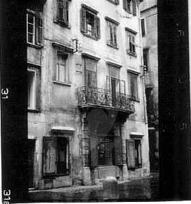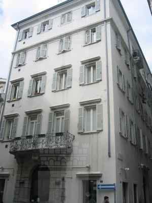 L'edificio sorge all'interno dell'ex Ghetto Nuovo, nella Contrada delle Ombrelle, la cui denominazione sette-ottocentesca deriva dalla presenza di un bresciano dedito alla riparazione di ombrelli, Giacomo Malgarini. La struttura risale alla fine del Settecento, periodo di forte espanzione per questa zona di Cittavecchia. L'ingresso principale del palazzo in origine su Piazza Vecchia, in seguito viene utilizzato per ospitare "una panca da macellaio ed una bottega di pizzicagnolo" (Tribel, 1885). Nell'edificio, sede del primo ufficio tavolare, abitava il registratore Francesco de Giuliani. Il pianoterra rimane destinato ad ospitare attività commerciali.