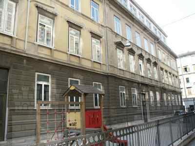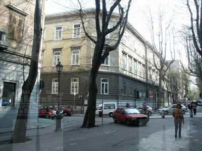 La "Civica Scuola Reale Superiore" di Trieste ebbe sede iniziale in via S. Lazzaro nell'edificio noto una volta come "Casa Muratti", ricordiamo infatti che fino al 1877 il Comune si era semplicemente limitato a prendere in affitto i locali, destinati all'uso scolastico, da persone private. Nel 1879 si vennero a realizzare però due presupposti di particolare importanza che costrinsero il Comune ad adottare una drastica quanto definitiva soluzione: viste le precarie condizioni architettoniche in cui verteva il presente fabbricato e l'eccessivo importo della pigione si decise, allo scadere del contratto di affitto nell'agosto del 1879, di costruire un apposito edificio su progetto dell'ing.Boara. L'iniziale cifra pattuita per l'erezione di uno stabile sul fondo comunale prospiciente via dell'Acquedotto venne ben presto superata arrivando a sfiorare la somma complessiva di 215,000 fiorini. L'elevato costo della scuola trovò la sua giustificazione nelle migliorie apportate al progetto originale: la pietra bianca anziché la malta per il bugnato dell'affaccio principale, il moderno impianto di acqua e gas e altre innovazioni. Sopra il pianterreno, dove trovarono ubicazione l'ufficio del direttore, la sala per le conferenze, i servizi e la biblioteca, si innalzarono altri due piani destinati a 12 aule. L'edificio ospita attualmente la scuola media statale "Divisione Julia" sorta per effetto della legge n. 899 del 1 luglio 1940 e funzionante allora presso il liceo F.Petrarca trasferitasi proprio nell'edificio di via dell'Acquedotto nel 1923.