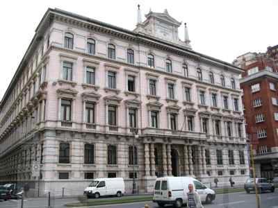 Nel 1883 la società delle Assicurazioni Generali, fondata nel 1831, commissionò all'ingegnere Eugenio Geiringer il progetto per la costruzione di un nuovo palazzo da destinare a sede centrale della compagnia. La costruzione dello stabile ebbe iniziò nel 1884, e terminò nel 1886. A partire dall'agosto del 1886 nel nuovo palazzo di piazza Duca degli Abruzzi, allora via della Stazione, si trasferirono tutti gli uffici che prima si trovavano in Palazzo Carciotti. Il Palazzo delle Generali fu il primo edificio a Trieste ad avvalersi della luce elettrica per l'illuminazione degli uffici. L'edificio, in stile neogreco, fu ampliato nella seconda decade del Novecento con un'ala retrostante. Nel vestibolo è collocato un grande bassorilievo bronzeo raffigurante guerrieri e vittorie alate, opera dello scultore genovese Luigi Supino. Nel 1939 Carlò Sbisa realizzò due affreschi nell'atrio del palazzo.