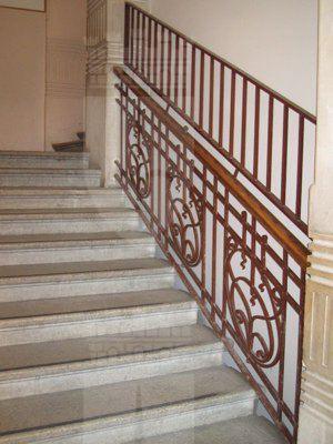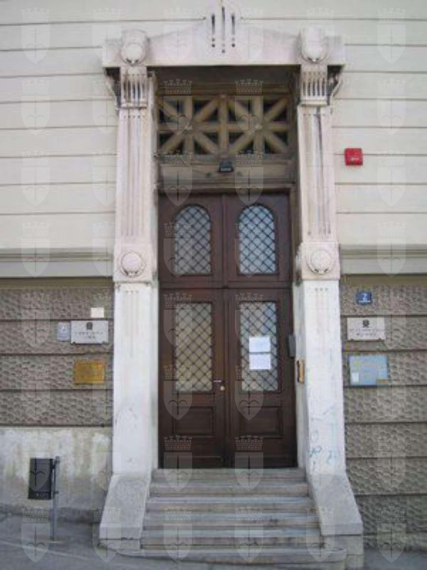 SOPRALUCE (esterno): Serie di cinque sopraluce in pietra posti al di sopra dei portoni del cortile interno. CORNICE DEL PORTONE PRINCIPALE (esterno): Cornice del portone principale in pietra bianca. Due pilastri scanalati e inframmezzati da due dadi cingono il portone. Due mensole a volute reggono il gocciolatoio. (IMG_1131) DECORAZIONE DEL PORTONE (esterno): Decorazione in ferro del portone d'accesso su Via Luigi Frausin. Raffigura un elemento fiammeggiante che si avviluppa attorno al montante del portone. BASSORILIEVO (esterno ed interno): Bassorilievo raffigurante un fiore o un'alabarda stilizzata ricorrente sui capitelli delle lesene, sui pilastri della scala dell'atrio principale e sui pilastri delle scale interne. (IMG_1162) PAVIMENTO (interno): Pavimento dell'atrio principale con piastrelle a motivi floreali. CORNICE DELL'ATRIO (interno): Cornice dell'atrio principale decorata con motivi geometrici e sculture di volti di donna riccamente impreziosite. PARAPETTO (interno): Parapetto dei vani scala in ferro con motivi a volute. (IMG_1143)