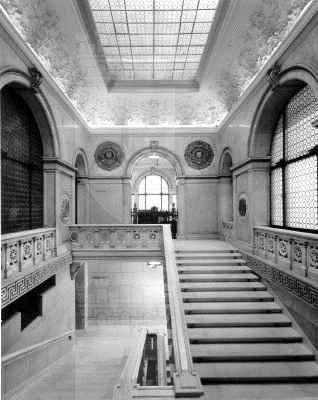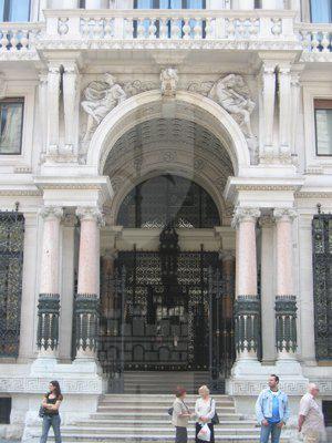 L'edificio, a pianta rettangolare, è costituito da cinque piani fuori terra. Affacci su Piazza della Repubblica, Corso Italia, Via Santa Caterina e Via Dante Alighieri. Le facciate del palazzo non sono unitarie, anche se presentano la medesima suddivisione della superficie muraria. L'accesso alla parte rappresentativa da piazza della Repubblica, con colonne, bronzi, stucchi, marmi variopinti, a testimoniare l'aderenza allo stile eclettico. Soprattutto l'assenza del bugnato per la parte inferiore sono ascrivibili a Ruggero Berlam, mentre gli ingressi laterali e lo scalone interno risultano più vicini al gusto di Arduino Berlam. L'ingresso principale è caratterizzato dal motivo a serliana, da cui si accede all'atrio voltato a botte, con decorazioni a cassettoni. Nella lunetta dell'arco d'ingresso sono collocate due statue raffiguranti le personificazioni di Pensiero ed Azione. Al di sopra emerge un balcone aggettante con parapetto a balaustre in pietra, su cui si apre una porta finestra affiancata da colonne binate sormontate dalle statue della Previdenza e Protezione. I balconi balaustrati sono sostenuti da mensoloni a voluta che arricchiscono anche lo sporto di linda, decorato da motivi floreali. La tripartizione del palazzo è rinascimentale con i lati brevi suddivisi in nove aperture caratterizzate da finestre architravate, timpanate e quadrate nella parte alta. Tutti i particolari sono realizzati in marmo del Carso, mentre le inferriate e le decorazioni in ferro battuto sono realizzate da un'importante ditta artigianale friulana. La ricchezza dei particolari si trova anche all'interno dell'edificio, in particolare, nel vano d'ingresso dominato da una fontana monumentale, raffigurante Nettuno, da mosaici, statue e colonne di gusto accademico.