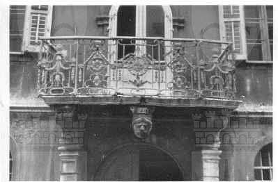 PANDURO Sopra al portale d'ingresso principale è presente un mascherone raffigurante un volto d'uomo con turbante BALAUSTRA Il poggiolo è ingentilito da una balaustra in ferro battuto lavorata con decorazioni vegetali e geometriche.