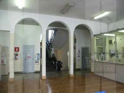 Lungo le vie pubbliche, abbassamento in pietra bianca bulinata posto a correre lungo l'intera facciata, basamento in finto bugnato ad intonaco in corrispondenza del piano terra, con paraste poste a suddividere la facciata principale in tre porzioni ed a rafforzare gli spigoli dell'edificio; porzione superiore di facciata trattata ad intonaco liscio. Serramenti vetrati in legno massello a doppia anta verniciati colore verde con sopraluce e fascia vetrata inferiore apribile a vasistas. Al piano terra fori architettonici rettangolari, con piattabanda in finti conci trattati ad intonaco e davanzale in pietra bianca posto a correre lungo l'intera facciata; oscuranti esterni in doghe di legno massello verniciate colore verde; portale di accesso centrale in legno massello verniciato colore marrone, con anta centrale vetrata con inferriata in ferro battuto, specchiature laterali e superiori in legno massello; ai lati del portale, due fori finestra protetti da inferriate in ferro battuto danno luce all'ampio atrio; un portone in legno massello con sopraluce vetrato protetto da inferriata in ferro battuto dà accesso alla basilica paleocristiana. Al primo piano fori architettonici rettangolari incorniciati da edicole modanate in pietra bianca, timpani triangolari in corrispondenza della porzione centrale della facciata principale, architravi orizzontali modanati in corrispondenza degli altri fori. Fascia marcapiano a livello del davanzale delle finestre del secondo piano, incorniciate da elementi modanati in pietra bianca, con mensole a voluta a sostegno del davanzale. Coronamento a livello della linea di gronda, con fregio decorato da motivi geometrici e modanatura a dentelli posta a correre lungo il filo della banchina. Finestre dell'attico incorniciate da elementi modanati con concio di chiave in pietra bianca. Gronda e pluviale in lamiera, interni alla muratura a livello del piano terra in corrispondenza delle facciate lungo la pubblica via, banchina trattata ad intonaco e manto di copertura in coppi curvi rossi uso Trieste. Facciata rivolta verso il cortile interno trattata semplicemente ad intonaco, con fori finestra incorniciati da elementi semplici in pietra e protetti da inferriate in ferro battuto in corrispondenza del livello rialzato del cortile. Atrio di ingresso monumentale pavimentato in marmo, colonnato di separazione dal vano scala con colonne doriche in pietra di Aurisina bulinata, superfici verticali in spatolato colore beige. Scala del tipo appoggiato su putrelle metalliche con gradini in pietra bianca bulinata, pianerottoli sostenuti a mezzo di volte ribassate in pietra, balaustra in ferro battuto con corrimano ligneo; corridoi al primo ed al terzo piano pavimentati in battuto di cemento e graniglia; al secondo piano in parquet disposto a spina di pesce. Abbassamento laterale in pittura ad olio. Pavimenti delle aule in parquet ligneo disposto a spina di pesce. Serramenti interni in legno massello verniciato bianco, vetrati con specchiature di grandi dimensioni in corrispondenza delle porte di comunicazione tra i corridoi. Abbaini vetrati danno luce al sottotetto sul lato cortile.