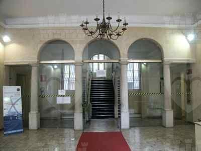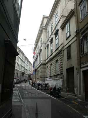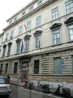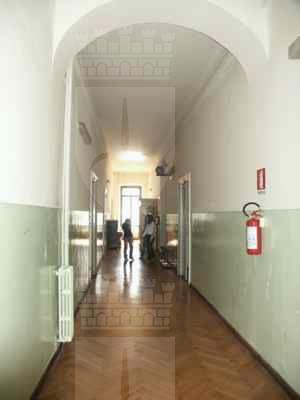 Lungo le vie pubbliche, abbassamento in pietra bianca bulinata posto a correre lungo l'intera facciata, basamento in finto bugnato ad intonaco in corrispondenza del piano terra, con paraste poste a suddividere la facciata principale in tre porzioni ed a rafforzare gli spigoli dell'edificio; porzione superiore di facciata trattata ad intonaco liscio. Serramenti vetrati in legno massello a doppia anta verniciati colore verde con sopraluce e fascia vetrata inferiore apribile a vasistas. Al piano terra fori architettonici rettangolari, con piattabanda in finti conci trattati ad intonaco e davanzale in pietra bianca posto a correre lungo l'intera facciata; oscuranti esterni in doghe di legno massello verniciate colore verde; portale di accesso centrale in legno massello verniciato colore marrone, con anta centrale vetrata con inferriata in ferro battuto, specchiature laterali e superiori in legno massello; ai lati del portale, due fori finestra protetti da inferriate in ferro battuto danno luce all'ampio atrio; un portone in legno massello con sopraluce vetrato protetto da inferriata in ferro battuto dà accesso alla basilica paleocristiana. Al primo piano fori architettonici rettangolari incorniciati da edicole modanate in pietra bianca, timpani triangolari in corrispondenza della porzione centrale della facciata principale, architravi orizzontali modanati in corrispondenza degli altri fori. Fascia marcapiano a livello del davanzale delle finestre del secondo piano, incorniciate da elementi modanati in pietra bianca, con mensole a voluta a sostegno del davanzale. Coronamento a livello della linea di gronda, con fregio decorato da motivi geometrici e modanatura a dentelli posta a correre lungo il filo della banchina. Finestre dell'attico incorniciate da elementi modanati con concio di chiave in pietra bianca. Gronda e pluviale in lamiera, interni alla muratura a livello del piano terra in corrispondenza delle facciate lungo la pubblica via, banchina trattata ad intonaco e manto di copertura in coppi curvi rossi uso Trieste. Facciata rivolta verso il cortile interno trattata semplicemente ad intonaco, con fori finestra incorniciati da elementi semplici in pietra e protetti da inferriate in ferro battuto in corrispondenza del livello rialzato del cortile. Atrio di ingresso monumentale pavimentato in marmo, colonnato di separazione dal vano scala con colonne doriche in pietra di Aurisina bulinata, superfici verticali in spatolato colore beige. Scala del tipo appoggiato su putrelle metalliche con gradini in pietra bianca bulinata, pianerottoli sostenuti a mezzo di volte ribassate in pietra, balaustra in ferro battuto con corrimano ligneo; corridoi al primo ed al terzo piano pavimentati in battuto di cemento e graniglia; al secondo piano in parquet disposto a spina di pesce. Abbassamento laterale in pittura ad olio. Pavimenti delle aule in parquet ligneo disposto a spina di pesce. Serramenti interni in legno massello verniciato bianco, vetrati con specchiature di grandi dimensioni in corrispondenza delle porte di comunicazione tra i corridoi. Abbaini vetrati danno luce al sottotetto sul lato cortile.