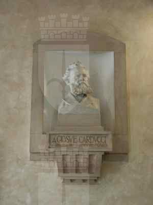 ELEMENTO ORNAMENTALE (esterno) Fascia basamentale a bugnato sui prospetti lungo la pubblica via. Al primo piano fori architettonici rettangolari incorniciati da edicole modanate in pietra bianca, timpani triangolari in corrispondenza della porzione centrale della facciata principale, architravi orizzontali modanati in corrispondenza degli altri fori. Fascia marcapiano a livello del davanzale delle finestre del secondo piano, incorniciate da elementi modanati in pietra bianca, con mensole a voluta a sostegno del davanzale. Coronamento a livello della linea di gronda, con fregio decorato da motivi geometrici e modanatura a dentelli posta a correre lungo il filo della banchina. ELEMENTO ORNAMENTALE (interno) Nell'atrio di ingresso, busto raffigurante Giosuè Carducci e riportante alla base la seguente diciture: "A GIOSUE' CARDUCCI, la scuola nell'anno della fondazione MCMXXII ELEMENTO ORNAMENTALE (interno) Nell'atrio di ingresso, lapide con profilo di Dante Alighieri con inscrizione riportante la seguente dicitura: "O MAGNO SPIRITO VEGLIA SU NOI ALUNNE, MCMXI" ELEMENTO ORNAMENTALE (interno) Mensole a voluta in pietra di Aurisina in corrispondenza del primo piano del vano scala, un tempo necessarie al sostegno dei corpi illuminanti. LAPIDE (interno) Al primo piano, in corrispondenza del salone centrale, lapide commemorativa in pietra di Aurisina, riportante la seguente dicitura: "DEI CADUTI PER L'ITALIA L'OPERA NOSTRA PERPETUI LA VIRTU' LA FEDE LA GLORIA". ELEMENTI ORNAMENTALI (interno) Mosaico paleocristiano di estese dimensioni sul pavimento della navata della basilica paleocristiana posta al di sotto del piano stradale.