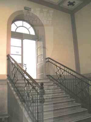 L'immobile è collocato su un salto di quota nel centro cittadino ed è limitato dalle due parallele di Via Commerciale, posta più in alto, e Via Ruggero Manna; queste due vie sono unite perpendicolarmente da Via Sant'Anastasio, su cui si affaccia il prospetto principale. La pianta a E dell'edificio descrive internamente un cortile confinante, su un lato, con il retro di alti fabbricati . L'edifico è composto da un piano interrato e quattro livelli fuori terra. Data l'accentuata pendenza del sito, l'edificio è suddiviso in tre blocchi edilizi, uno dei quali, compreso tra Via Commerciale e Via Sant'Anastasio, è posto sulla quota più alta del dislivello ed è collegato al blocco centrale sfalsato di un piano. La stessa soluzione è utilizzata per il collegamento del blocco centrale con quello più basso, su Via Sant'Anastasio. Sulla facciata di Via Sant'Anastasio sono distribuiti i due accessi principali all'edificio e un terzo ingresso, di servizio, è posto all'angolo con Via Manna: sui due prospetti laterali si aprono gli accessi secondari, due per ogni lato, uno dei quali carrabile. La struttura edilizia dell'immobile è in muratura composta da blocchi di pietra squadrata e mattoni di laterizio. Gli orizzontamenti sono differenti per piani: ai piani inferiori i solai sono costituiti in latero cemento con travi in cemento armato, mentre, ai piani superiori, sono in legno a doppia orditura con controsoffitto piano. La struttura dei collegamenti verticali è a rampe con interpiano: le scale sono composte da gradini autoportanti in pietra, collegati a mensola nel muro e appoggiati su una putrella metallica sull'altra estremità. La struttura della scala, nel corpo centrale, è integrata con pilastri quadrangolari in pietra e, all'ultimo piano, cinta da una balaustra lapidea. Tutte le ringhiere delle scale sono in ferro battuto con corrimano in legno. La copertura è a doppio spiovente, con orditura lignea e pianelle in laterizio: il manto di copertura è in coppi di laterizio. La gronda e il pluviale sono in lamiera zincata. Il rivestimento del piano interrato e del primo piano è costituito da un basamento in lastre lapidee e da una superficie in pietra bugnata divisa orizzontalmente da un primo marcapiano. Il limite superiore del bugnato è cinto da un secondo marcapiano in pietra da cui si sviluppa la facciata dei piani superiori, trattata con mattoni a faccia-vista e tripartita verticalmente da lesene, ognuna delle quali racchiude tre file di finestre. Un ultimo marcapiano in pietra è posto tra il terzo e quarto piano. La cornice neoclassica del tetto si sviluppa lungo tutto il profilo dell'edificio ed è integrata da una serie di doppie mensole poste in corrispondenza delle lesene. Le facciate dell'edificio sono forate da differenti tipologie di bucature: al piano interrato, sono di tipo rettangolare con piattabanda, al primo piano, nella parte centrale della facciata, i fori sono rettangolari con piattabanda e, lateralmente, ad arco ribassato; al secondo piano, sono a piattabanda con concio di chiave, al terzo e quarto piano i fori sono ad arco ribassato con concio di chiave. Solo le finestre del terzo piano sono dotate di davanzale, tutte le altre sono sistemate sulle cornici dei marcapiani. I fori del corpo centrale situato su Via Sant'Anastasio, si differenziano dal resto delle facciate. Essi, infatti, sono ad arco ribassato con concio di chiave, al secondo e terzo piano, invece al quarto piano sono costituite da una serie di doppie finestre con colonna centrale e arco ribassato. I lati della facciata esposta su Via Manna sono forati da diversi tipi di finestre distinte per piano; solo nella parte centrale della facciata è mantenuta la stessa distribuzione tipologica come gli altri prospetti. Al primo piano, infatti, i fori sono ad arco con cornice e balaustra: un'unica finestra rettangolare è posta in prossimità dell'angolo con Via Sant'Anastasio. Al secondo e terzo piano sono presenti delle doppie finestre rispettivamente con piattabanda e ad arco, entrambe con concio di chiave. Al quarto piano, i fori dai lati della facciata sono costituiti da trifora ad arco ribassato in con concio di chiave. Tutti gli ingressi sono costituiti da portali ad arco con cornice modanata in pietra. Sulla parte superiore del portale è posto lo spiovente di una pensilina. Il portale d'ingresso, situato sulla parte alta di Via Sant'Anastasio, è preceduto da una scalinata con struttura portante ad arco rampante in pietra sotto la quale si apre un ingresso di servizio al piano interrato. I prospetti interni, con affaccio sul cortile, sono costituiti da un basamento in pietra bugnata, delimitato da una fascia in pietra bianca, al piede del muro, e da una cornice marcapiano. Sul lato lungo del piano terra, confinante con il cortile, si trova un portico con archi e copertura voltata. La superficie dei piani superiori è in mattoni a faccia vista a tutta altezza. Gli accessi al cortile sono a piattabanda e le finestre ad arco. I fori delle facciate dei piani superiori sono ad arco; alcune finestre sono costituite da bifore e trifore, con arco di scarico e orbicolare tamponato. Il cortile è distribuito su due quote diverse: una parte è a livello dell'ingresso di Via Manna con cui è collegato da un accesso carrabile, l'altro livello è a quota del primo piano ed è servito da accessi serviti da scale esterne, distribuite in facciata. Dal salto di quota del cortile, è stato ricavato un altro volume edilizio, ad un piano, utilizzato come terrazzo e internamente adibito a palestra. Il bugnato del prospetto è forato da una serie d'ingressi, ad arco ribassato, e da doppie finestre in asse, a piattabanda con pilastrino centrale. Dalla facciata, superati gli ingressi principali, si accede ad un atrio in cui è inserita una rampa di scale che porta al livello del primo piano: superato l'atrio d'ingresso, si entra nel corridoio in cui sono disposti gli ambienti e i collegamenti verticali. Questa distri