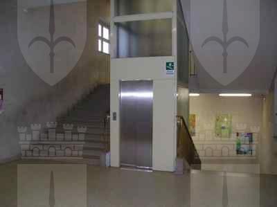 Il paramento murario esterno del piano terra, rivestito con lastre di pietra bocciardate, è delimitato, superiormente, da una cornice in pietra. Le facciate dei piani superiori sono rivestite da mattoni a faccia vista e da cornici in pietra artificiale, poste all'altezza del davanzale e dell'architrave dei fori. La cornice del tetto è realizzata con conci di pietra artificiale a forma di mensola posti su una fascia non modanata in pietra artificiale. Il rivestimento dei pilastri a sezione quadrata e dell'architrave del portico è costituito da lastre di pietra artificiale bocciardate, similari al rivestimento del paramento murario del piano terra. I fori del piano terra, di forma rettangolare, sono protetti da una grata in ferro saldato e provvisti di infisso in alluminio a due ante con quattro specchiature in vetro e sopraluce a vasistas. I fori dei piani superiori e le porte-finestre del terrazzo sono dotati di cornice modanata in pietra artificiale; l'infisso è in alluminio verniciato di colore bianco, a due ante con quattro specchiature in vetro e sopraluce a vasistas. Il terrazzo, ricavato sulla copertura piana del portico, è pavimentato con mattonelle in pietra ed è delimitato da una ringhiera in ferro. La scala d'ingresso è fiancheggiata da spallette in muratura, rivestite con lastre in pietra artificiale bocciardate. La struttura della scala è in muratura, rivestita con lastre in pietra a forma irregolare sulla superficie delle pedate; le alzate sono realizzate con blocchi squadrati di pietra massiccia naturale. I fori d'ingresso sono costituiti da tre alti portoni, di forma rettangolare, intervallati da setti murari rivestiti da lastre di pietra artificiale. I serramenti dei portoni d'ingresso sono in ferro, a sei specchiature vetrate protette con una grata in ferro saldato; l'atrio di ingresso è caratterizzato da una parete vetrata con telaio in legno dotato di sopraluce. La superficie delle pareti dell'atrio d'ingresso e del vano scala è rivestita con lastre di pietra artificiale levigata. La pavimentazione dei corridoi è in mattonelle di graniglia policroma; nei locali di servizio e nei pianerottoli del vano scala è in piastrelle di ceramica. La pavimentazione delle aule e degli uffici è in parquet. Le porte delle stanze sono in legno verniciato, ad un'unica anta. Le porte di collegamento con i corridoi e il vano scala sono in ferro con maniglia antipanico. La scala è in muratura con scalini rivestiti da lastre di marmo. La ringhiera è in ferro saldato verniciato con corrimano in legno e poggia su una spalletta in muratura.