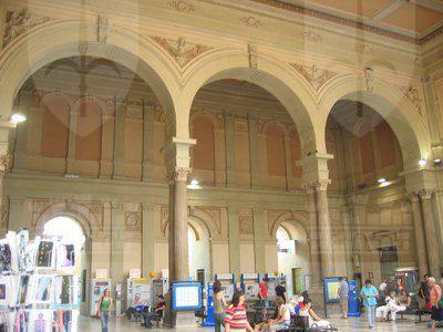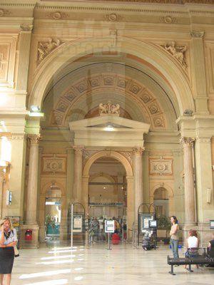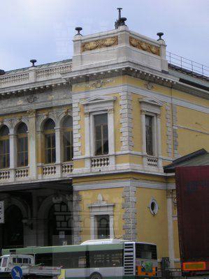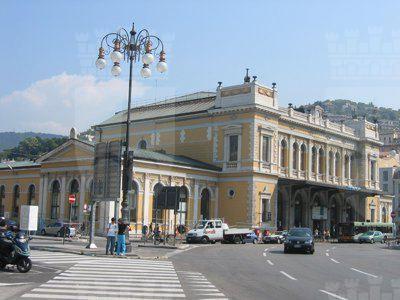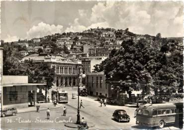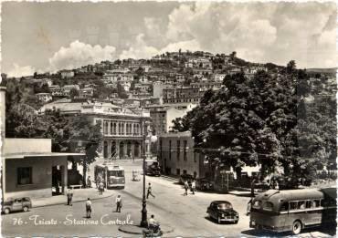 Nel 1850 vennero avviati i lavori di costruzione della prima stazione ferroviaria di Trieste; la prima linea aperta in città permetteva il collegamento con Vienna, al quale si aggiunse nel 1857 la linea Trieste Lubiana. Per la costruzione della prima stazione, che si trovava un centinaio di metri arretrata rispetto alla struttura attuale, fu scavata parte della collina di Scorcola e vennero demoliti diversi edifici. Poco tempo dopo si rivelò la necessità di ingrandire la stazione e di costruire un nuovo edificio per accogliere i passeggeri. Nel 1869 il Lazzaretto S. Teresa fu demolito e nel 1873 si iniziarono i lavori per l'ampliamento della stazione. La nuova stazione, costruita su progetto dell'architetto Wilhelm Flattich di Stoccarda, fu inaugurata il 19 giugno 1878 e completata nel 1888. Il complesso della stazione era costituito anche da altri due edifici; la cosiddetta "Casa del ferroviere" e la rimessa semicircolare, demoliti negli anni Settanta. Diverse modifiche interessarono la struttura nel corso del XX secolo, tra la creazione di nuovi locali per ospitare servizi e uffici. Attualmente parte dell'edificio è in restauro.
