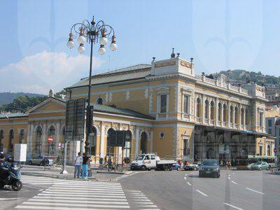 Nel 1850 vennero avviati i lavori di costruzione della prima stazione ferroviaria di Trieste; la prima linea aperta in città permetteva il collegamento con Vienna, al quale si aggiunse nel 1857 la linea Trieste Lubiana. Per la costruzione della prima stazione, che si trovava un centinaio di metri arretrata rispetto alla struttura attuale, fu scavata parte della collina di Scorcola e vennero demoliti diversi edifici. Poco tempo dopo si rivelò la necessità di ingrandire la stazione e di costruire un nuovo edificio per accogliere i passeggeri. Nel 1869 il Lazzaretto S. Teresa fu demolito e nel 1873 si iniziarono i lavori per l'ampliamento della stazione. La nuova stazione, costruita su progetto dell'architetto Wilhelm Flattich di Stoccarda, fu inaugurata il 19 giugno 1878 e completata nel 1888. Il complesso della stazione era costituito anche da altri due edifici; la cosiddetta "Casa del ferroviere" e la rimessa semicircolare, demoliti negli anni Settanta. Diverse modifiche interessarono la struttura nel corso del XX secolo, tra la creazione di nuovi locali per ospitare servizi e uffici. Attualmente parte dell'edificio è in restauro.
