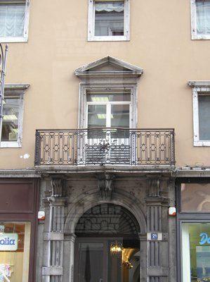 BALAUSTRA (esterno): Balaustra in ferro battuto decorata da motivi geometrici LESENE (esterno): Lesene scanalate con mensole a livello del portale d'ingresso