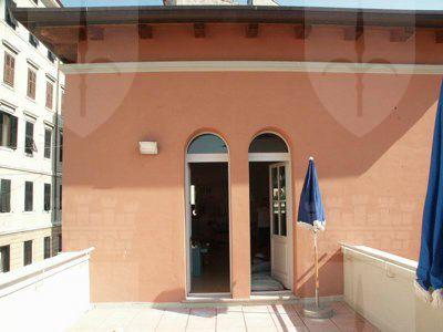 ELEMENTO ORNAMENTALE (esterno) In corrispondenza del corpo in aggetto del fronte principale, sono presenti fori architettonici con cornici in pietra bianca e finte edicole ad arco trattate ad intonaco con paraste laterali; sui fori al piano terra sono posti conci di chiave uniti da una fascia marcapiano posta a correre lungo l'intera facciata; a coronamento della facciata, al di sotto della quota d'imposta dei puntoni della copertura, è posta una sottile modanatura a correre.