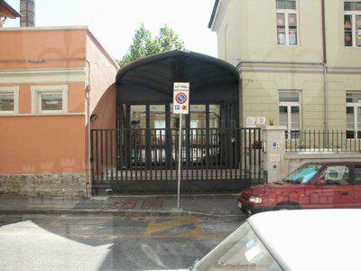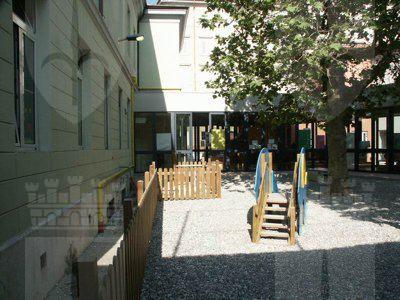 Nel 1884, in occasione del matrimonio del principe ereditario Arciduca Rodolfo, il Consiglio cittadino deliberò di stanziare la somma di 20.000 fiorini da destinarsi alla costruzione di un asilo infantile nella zona di Chiadino sul fondo tavolare N.382 di proprietà del Comune fronteggiante un'androna in continuazione di via Manzoni. Il fondo, che avrebbe dovuto comprendere tanto la costruzione dell'edificio quanto quella di un giardino per un totale di 1520 mq, veniva così a trovarsi tra le Sale di Lavoro per fanciulli abbandonati e la Pia Casa dei Poveri. L'inaugurazione del nuovo Giardino d'Infanzia intitolato all'Arciduca Rodolfo avvenne il 20 ottobre 1884. La cifra iniziale fu ben presto superata tanto da raggiungere la spesa complessiva di 29.461 fiorini. La costruzione comprendeva due livelli: al piano inferiore trovarono posto tre stanze didattiche, la cancelleria e, come era allora consuetudine, l'alloggio per la dirigente, al piano superiore furono invece previste una palestra, un refettorio, un'ulteriore stanza scolastica ed una cucina con annessa dispensa. Nel 1884 a soli tre mesi dall'apertura a causa di un'epidemia di vaiolo l'asilo fu trasformato in ospedale. Il 1 aprile dell'anno seguente fu riaperto al pubblico, ma otto mesi più tardi chiuso di nuovo per l'imperversare di una grave epidemia di colera, fatto questo che costrinse il Comune a destinare l'edificio scolastico a "casa di osservazione" per le famiglie colpite dalla malattia. L'8 gennaio del 1887 il Magistrato Civico decretò la riapertura dell'asilo. Oggi la scuola, completamente restaurata e rinnovata nei suoi interni, è divisa in due strutture distinte: la scuola materna, nell'edificio del fu asilo Arciduca Rodolfo (sita al civico n.14) e l'asilo nido nell'edificio attiguo (al civico n.10 e 12) di proprietà del Comune sin dalla sua originaria destinazione come bagno pubblico. I dati catastali-tavolari riportati nella presente scheda sono riferiti al piano presentato nel corso dell'anno 2005, in corso di approvazione alla data dell'inserimento.