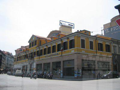 La struttura presenta pianta rettangolare e due piani fuori terra. Affaccio principale su Piazza Carlo Goldoni e secondario su Via Silvio Pellico. La facciata principale presenta fori commerciali al pianterreno, caratterizzato da rivestimento in pietra grigia; al centro si apre un portale ad arco a tutto sesto, con mensola in chiave di volta, affiancato da semicolonne lisce e semipilastri a fasce con capitello corinzio, a sostegno del balcone con parapetto in ferro battuto del secondo piano. Il piano superiore, trattato ad intonaco giallo, è caratterizzato da una serie di diciannove fori finestra, con cimasa lineare in pietra bianca e cornice marcapiano a sostegno dei davanzali. In corrispondenza della parte centrale della facciata si trova una sopraelevazione, coronata da timpano, su cui si aprono tre fori finestra. Il prospetto su Via Silvio Pellico presenta pianterreno con rivestimento a bugnato rustico e cinque archi a tutto sesto, e piano superiore a bugnato liscio e cinque fori finestra con cornice. A coronamento della facciata si trova un fregio decorato da motivi vegetali e al centro la scritta "Il Piccolo".