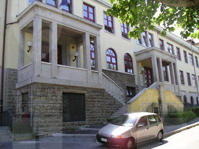 L'edificio è ubicato sulla collina di San Luigi, con l'affaccio principale su via Carlo Archi ed in prossimità di un boschetto. L'edificio, con pianta a forma rettangolare, presenta un piano interrato, due piani fuori terra ed un attico; sul fronte principale è posta una scalinata a doppia rampa. La struttura portante è in calcestruzzo armato e laterizio; i solai sono in latero-cemento. La copertura è a terrazzo con rivestimento in guaina bituminosa. Grondaie e pluviali sono in rame. L'edificio presenta lungo il perimetro una fascia di basamento in pietra bugnata; al di sopra e fino all'altezza del primo solaio si estende un rivestimento in pietra artificiale. I livelli superiori sono rivestiti da intonaco liscio di colore giallo. La cornice del tetto è in muratura ed è integrata al parapetto del terrazzo. Nella parte centrale della facciata, il parapetto forma un timpano nel quale è inserito il quadrante di un orologio (P1010128.jpg). I fori finestra sono ad arco a tutto sesto lungo il piano seminterrato, rettangolari ai piani superiori. L'atrio d'ingresso, preceduto da una breve scalinata in pietra, introduce al corridoio del primo piano ed ai vani scala (P1010037.jpg). Le aule sono disposte lungo la facciata principale, i vani di servizio sul lato opposto.
