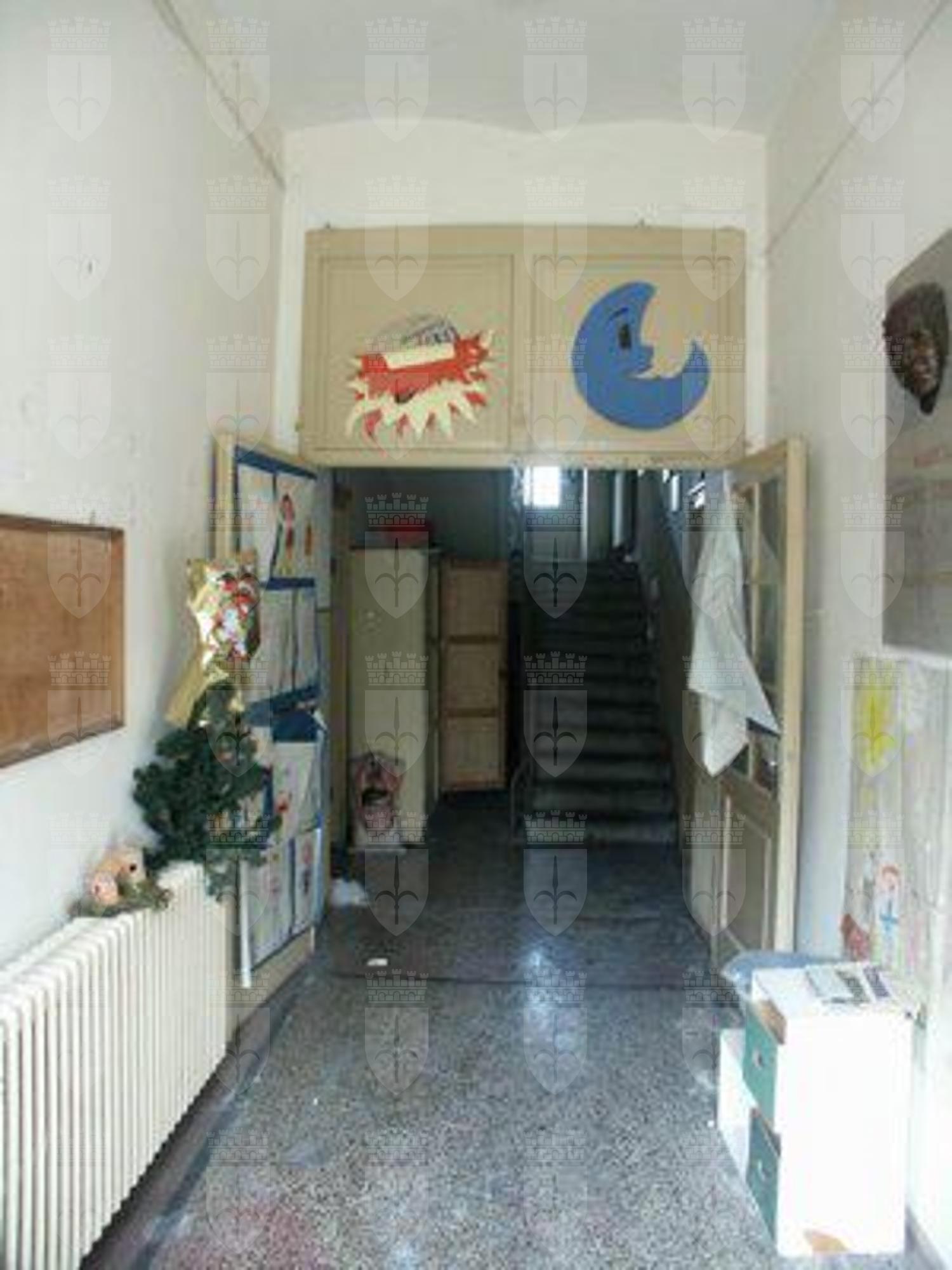 Fabbricato isolato su lotto di pertinenza con dimensioni notevoli rispetto agli edifici residenziali di piccole dimensione circostanti. Pianta rettangolare allungata. Disposizione su tre livelli continui fuori terra, più sottotetto. Composizione di facciata fortemente simmetrica, suddivisa orizzontalmente in due fasce; quella basamentale ad intonaco grigio e quella superiore ad intonaco color beige. Strutture verticali in muratura portante di arenaria a corsi irregolari suborizzontali con archi di scarico ribassati in corrispondenza delle aperture; strutture orizzontali di tipo misto, in voltine di laterizio al piano terra, lignee ai piani superiori in corrispondenza delle aule. Copertura a falde con struttura portante lignea. Scala in pietra del tipo appoggiato su putrelle metalliche.