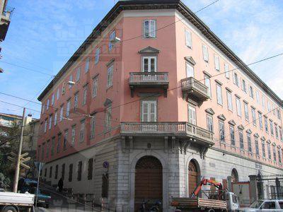 L'immobile sorge su Piazza casali, già Piazza Scorcola, da cui ha principio Via Commerciale, già Commerciale Nuova, "più conosciuta col nome di strada nuova d'Opicina& essendo stata aperta appena nel 1832 sotto il governatore Principe di Porcia" (Generini, 1968, p. 154). La zona è interessata da una fase di sviluppo edilizio dalla metà dell'Ottocento, in seguito all'incremento delle attività commerciali legate soprattutto all'ampliamento del porto cittadino; in questo periodo si assiste alla costruzione di palazzi e ville, immerse in ampi parchi, commissionate da ricche famiglie, quali Villa Maser e Villa Czeicke. L'edificio in esame, eretto all'interno di un ampio parco, viene ricordato dalle fonti dell'epoca come "il palazzo del barone Ambrogio de Ralli, il cui giardino e le sere sono, da molti anni, affidati al signor Antonio Maron, che coltiva fiori per proprio conto e che, se ha saputo trarre profitto dal suo commefico, ha reso pure un servizio alla nostra città, che attualmente gode fama di città dei fiori" (Goracuchi, de, 1977, pp. 73-74). Il palazzo è stato completato nel 1851 su progetto dell'architetto Giuseppe Baldini, su commissione di Ambrogio Ralli, negoziante greco giunto nel 1821 in città, proprietario di una casa di importazioni ed esportazioni e di una banca, con interessi all'interno del Cotonificio Triestino, della Società metallurgica Triestina e della Raffineria Triestina Oli Minerali. Il complesso viene progettato secondo i principi neoclassici già impiegati in altri esempi dall'architetto Baldini, con una visione semplificata, arricchita solamente da elementi quali balconi e cornici. Il Palazzo è sede dell'Associazione degli Industriali della Provincia di Trieste e dell'Associazione Costruttori Edili. L'edificio, già di proprietà della Stock, è stato venduto nel marzo 1996, per ricavare ambienti per uffici e diverse unità abitative. Il vincolo è limitato alla facciata principale, allo scalone ed a cinque stanze del primo e secondo piano.