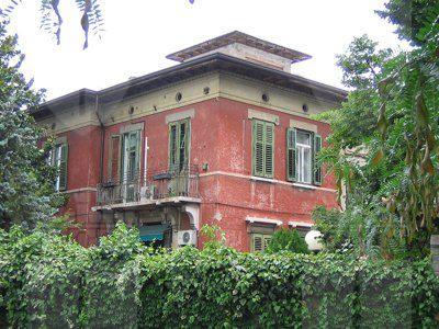 La villa presenta una fascia basamentale in lastre di pietra bianca bulinata ed una facciata interamente intonacata color rosso. Una cornice in pietra bianca marca la divisione tra i due livelli. A coronamento del fabbricato è presente una fascia continua intonacata color bianco interposta tra una cornice modanata in pietra bianca e un festone a motivi circolari. Nella facciata principale l'asse di simmetria è definito da una fascia intonacata color bianco con elementi decorativi in pietra bianca e marmo. I fori del primo livello hanno l'architrave segnata con intonaco, gocciolatoio modanato e sostenuto da reggimensole a voluta in pietra bianca e davanzale in pietra bianca. Al secondo livello l'architrave è eseguito in intonaco aggettante; il davanzale è in pietra bianca. Nel volume sopraelevato i fori hanno il davanzale e i piedritti in pietra bianca. Si distingue sulla facciata principale il foro centrale del vano scala che è lavorato con volute ed elementi rientranti in pietra bianca. (IMG_1352) Il foro d'ingresso sulla facciata principale ospita un portone in legno con due battenti a doppia specchiatura. Quello opposto rivolto a Ovest, cui si accede per mezzo di gradini in pietra bianca, ha una cornice in pietra bianca; a lato due piedritti sostengono i reggimensole in pietra bianca modanati e recanti figure leonine. L'accesso sul lato Nord, cui si accede per mezzo di gradini in pietra bianca, è incorniciato con una fascia di intonaco bianco; è inoltre sovrastato da un balcone sostenuto da due reggimensole in pietra bianca. Sul lato Sud quattro gradini in pietra bianca conducono al quarto acceso, definito da due colonne doriche. A lato due piedritti reggono l'architrave e un sistema di sei mensole che sostengono il balcone. I tre accessi secondari hanno un portone in legno con due battenti a doppia specchiatura con sopraluce. Le finestre hanno doppi serramenti in legno verniciato color bianco a doppia specchiatura e sopraluce. Casse e oscuranti in legno verniciato color verde. Fanno eccezione le porte-finestre che non hanno oscuranti ma tende alla veneziana. Sul lato Nord è presente una veranda in legno verniciata color verde. (IMG_1358) Bocche di lupo a forma semicircolare cinte da conci di pietra arenaria e protette da grate in ferro sul lato Ovest danno aria e luce al piano interrato. I balconi hanno parapetti ornati in ferro battuto. Una tettoia decorata in ferro battuto e retta da staffe a volute protegge l'ingresso sulla facciata principale. Il tetto piano ha un'orditura di travi lignee e assi su cui è steso uno strato di impermeabilizzazione. I camini sono in laterizio; gronde e pluviali sono in lamiera verniciata color marrone. Il giardino circostante, cinto da un muro in pietra arenaria, ospita aiuole e percorsi asfaltati. Una tettoia in ferro e policarbonato protegge l'area di parcheggio degli autoveicoli. L'ingresso principale è chiuso da un cancello in ferro battuto. Internamente l'entrata, i pianerottoli, i servizi igienici e il piano interrato hanno pavimenti in ceramica; tutti gli altri ambienti sono rivestiti da listelli di legno (IMG_1333). Corridoi sono controsoffittati con pannelli in fibre minerali. La scala principale ha gradini in pietra bianca, parapetto in ferro battuto e corrimano in legno. (IMG_1340) I gradini che scendono verso i vani interrati sono rivestiti con materiale sintetico antiscivolo e hanno un corrimano in ferro (IMG_1357). L'accesso al volume sopraelevato è garantito da una scala a chiocciola con gradini e parapetto in ferro verniciato color bianco.