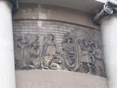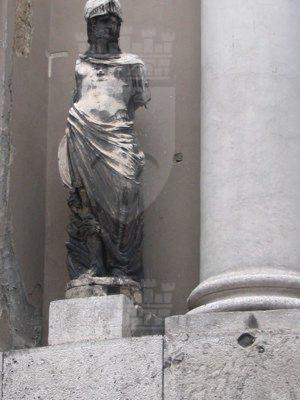 COLONNE (esterno) Colonne di ordine gigante con capitello ionico. STATUE (esterno) Alle estremità del colonnato sono collocate due statue raffiguranti Marte e Minerva, realizzate nella bottega veneziana di Antonio Bosa. FREGI (esterno) I fregi scolpiti a bassorilievo raffigurano eventi eroici della Roma repubblicana, in particolare una vicenda legata a Coriolano, Virginia uccisa dal padre e il sacrificio di Ifigenia. BALAUSTRE (esterno) Il parapetto del colonnato è caratterizzato da balaustrini da anfora in pietra. AFFRESCHI (interno) Decorazioni ad affresco sono presenti nella sala circolare e nella cosiddetta "saletta pompeiana". Rappresentano temi desunti dall'iconografia classica, come ad esempio la favola di Amore e Psiche, e affreschi di stile pompeiano.