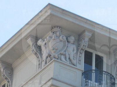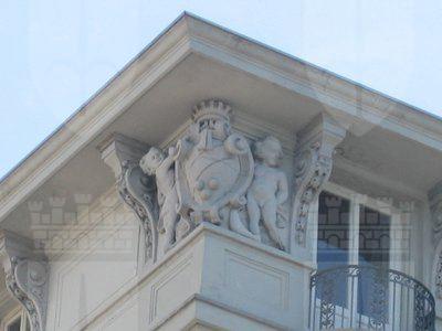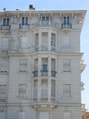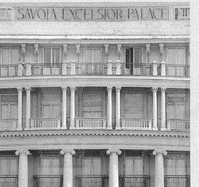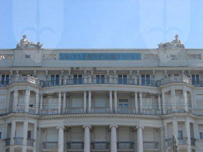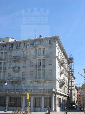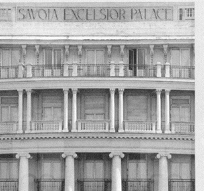 BALCONE (esterno): Balconi con parapetti in pietra o in ferro battuto a decorazione dei quattro prospetti dell'edificio. COLONNE (esterno): Colonne di ordine dorico con trabeazione classica a ritmare il pianoterra vetrato del prospetto principale. COLONNE (esterno): Colonne ioniche di ordine gigante in corrispondenza del terzo e quarto livello fuori terra della superficie centrale del prospetto principale. SCULTURE (esterno): Sculture raffiguranti putti che sostengono uno stemma in corrispondenza degli angoli al di sotto dello sporto di linda. SCULTURE (esterno): Sculture raffiguranti due figure, la Città di Trieste e Nettuno, collocate alla sommità del prospetto principale. FREGIO (estrerno): Fregio a mosaico riproducente la scritta "Savoia Excelsior Palace" di colore nero su fondo blu in corrispondenza del parapetto alla sommità del prospetto principale. MENSOLE (esterno): Mensoloni in pietra decorati da motivi floreali a sostegno dello sporto di linda.