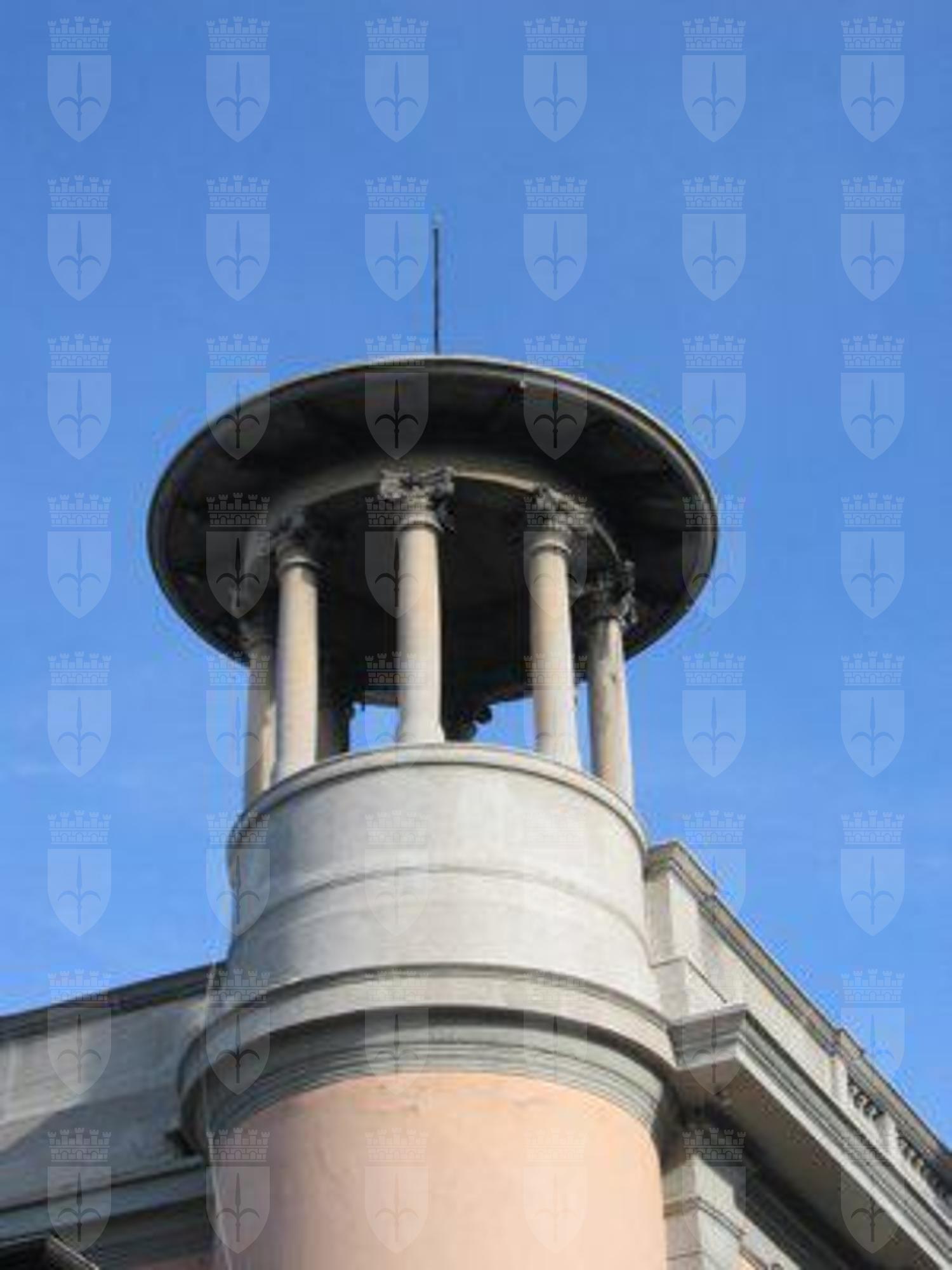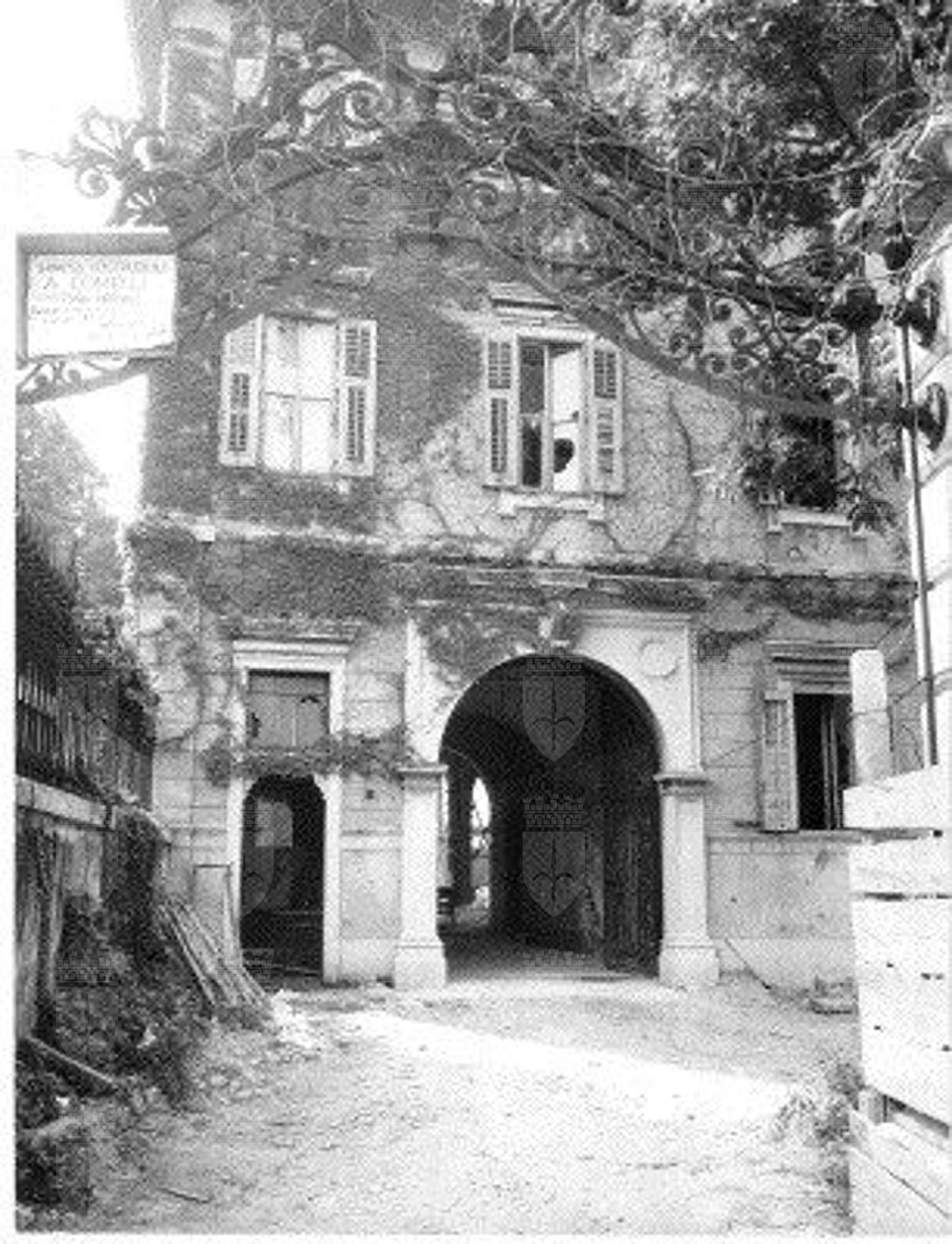 SERLIANA (esterno): Struttura a serliana costituita da balaustra in pietra aggettante nella parte centrale, caratterizzata da colonne libere ed ai lati semipilastri con capitello ionico. La chiave di volta dell'arco a tutto centro è arricchita da una mensola a voluta. La specchiatura superiore in pietra presenta una decorazione a motivi geometrici con parti in rilievo raffiguranti elementi floreali e due ghirlande simmetriche rispetto l'arco centrale. BALAUSTRA (esterno): Parapetto in pietra a balaustra in corrispondenza della terrazza superiore. VERANDA (esterno): Veranda con struttura di sostegno in pietra caratterizzata da pilastri con capitello ionico, copertura lignea in corrispondenza della terrazza del secondo livello della facciata posteriore. TORRETTA (esterno): Torretta circolare su cui si aprono due solo finestre e terminante con struttura a colonne libere di ordine ionico e copertura lignea. CANCELLO (esterno): Cancello in ferro battuto decorato da motivi geometrici e floreali.