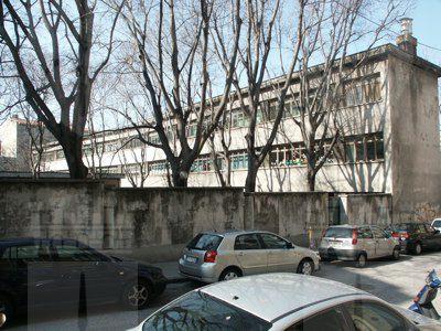 Il fabbricato, isolato su lotto di pertinenza, si distingue dal tessuto edilizio circostante per non presentare una pianta conformata alla geometria del lotto. L'edificio principale si articola su tre livelli fuori terra, più un livello interrato. La porzione centrale dell'edificio, in aggetto verso il fronte strada di Via Vasari, ospita l'atrio di accesso e gli uffici amministrativi. Le ali laterali ospitano le aule, rivolte in direzione sud-est. Le finestre a nastro a tutti i livelli accentuano l'orizzontalità della facciata. Nel cortile di pertinenza un secondo piccolo corpo edilizio ospita la palestra, collegata al corpo principale a mezzo di uno stretto corridoio. Le strutture portanti sono in calcestruzzo armato, con solai in laterocemento e tetto piano poco aggettante; una pronunciata pensilina in calcestruzzo armato, sorretta da cinque pilastri, protegge l'ingresso principale.