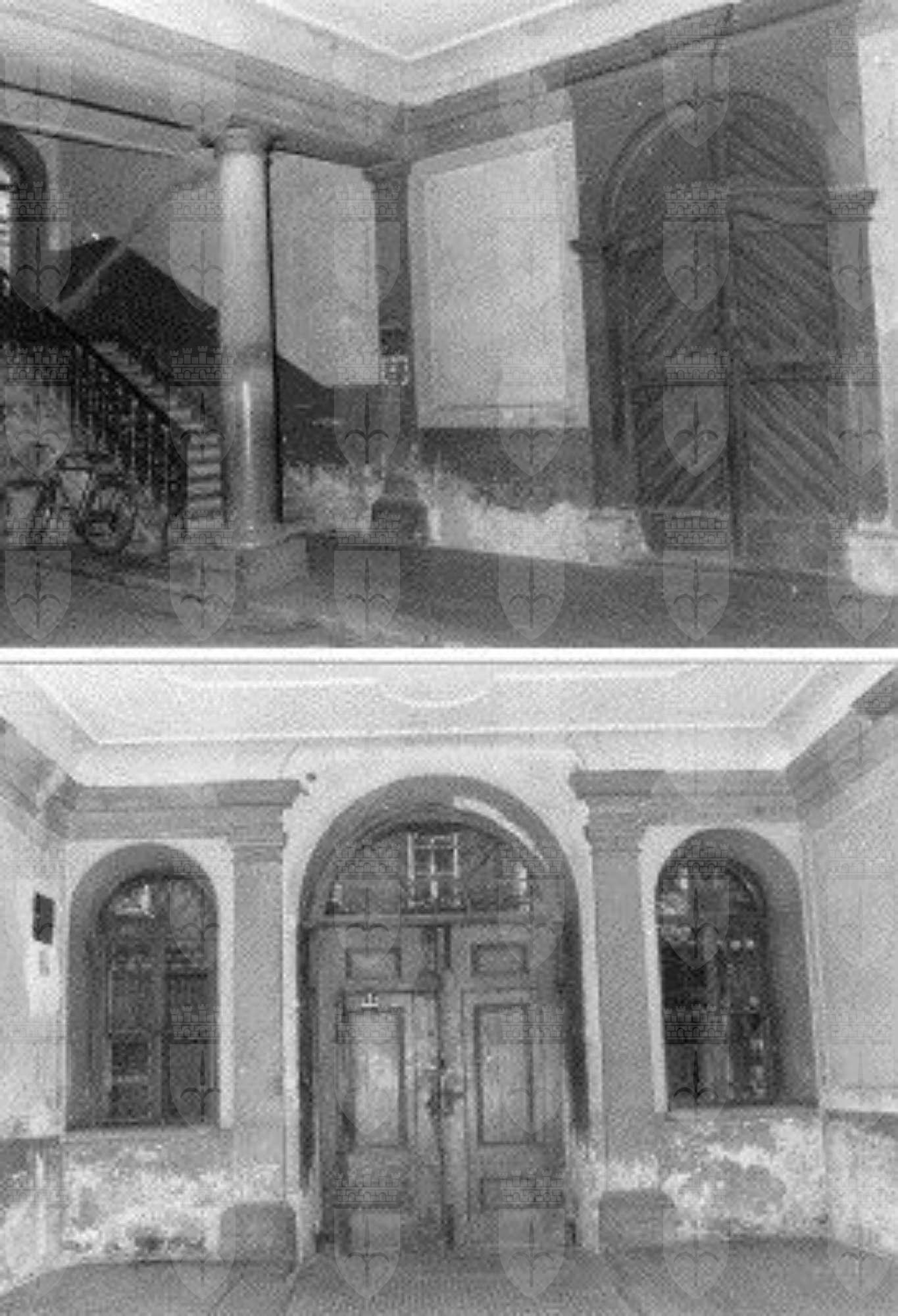 LESENE (esterno): Lesene scanalate e lisce ai del portale centrale e del prospetto principale. BALCONE (esterno): Balcone con parapetto a balaustre in pietra nella parte centrale del primo piano del prospetto principale. PANDURO (esterno): Panduro raffigurante un volto umano in corrispondenza della chiave di volta dell'arco del portale del prospetto principale. MENSOLE (esterno): Mensole a voluta a sostegno del balcone centrale del prospetto principale. CORNICE (esterno): Cornice a dentelli a coronamento del prospetto principale.