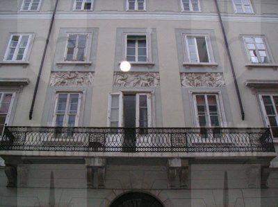 In questo edificio neoclassico, costruito nel 1823 su progetto di Matteo Pertsch, troviamo il motivo caro a lui caro di ornamenti a bassorilievo presente in numerose sue opere, e per il quale egli stesso si interessava contattando direttamente scultori e scalpellini. Nel 1952 sono state operate delle modifiche alla facciata al pianterreno.