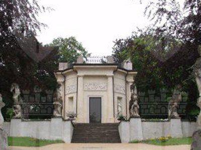 Il complesso si compone di diversi edifici costruiti all'interno del parco. La villa è formata da una semplice struttura con corpo centrale e due parti laterali aggettanti, a due piani fuori terra. Le superfici murarie sono articolate da semplici fori finestra rettangolari e da un'ampi vetrata sulla facciata principale. La struttura della gloriette si presenta di forma ottagonale; quattro fianchi sono caratterizzati da fori rettangolari inquadrati da semicolonne di ordine dorico che sostengono una trabeazione classica, mentre i rimanenti lati sono arricchiti da sculture. A coronamento della struttura si trova una balaustra con parapetto in ferro battuto, a cui si accede attraverso una scala a chiocciola; il sterminamento del balcone è arricchito da piccole sculture raffiguranti animali e sfingi. Un fregio a rilievo corre nella parte superiore della superficie muraria per tutto il perimetro della struttura; i rilievi raffigurano putti in diversi atteggiamenti. L'accesso alla gloriette è garantito da una scalinata affiancata da quattro sculture rappresentanti dei cavalli.