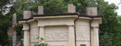 SCULTURE (esterno): Sculture raffiguranti quattro cavalli a lato della scalinata di accesso alla gloriette. SCULTURE (esterno): Sculture raffiguranti leoni, tigri, sirene e sfingi a coronamento della balaustra della gloriette. SCULTURE (esterno): Quattro sculture opera di Francesco Bonazza raffiguranti l'Abbondanza, la Pudicizia, Adone e una figura di guerriero all'interno di nicchie aperte su quattro lati dell'ottagono della gloriette. FREGIO (esterno): Fregio a rilievo raffigurante putti in diversi atteggiamenti lungo il perimetro della superificie muraria superiore della gloriette. SEMICOLONNE (esterno): Semicolonne di ordine dorico in corrispondenza degli angoli della struttura ottagonale della gloriette.