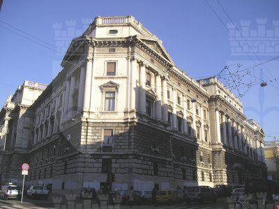 La struttura presenta una planimetria trapezoidale con corte interna e affaccio principale sul Foro Ulpiano, secondari su Via del Coroneo, Via della Fontana e Via Fabio Severo. Le facciate sono costituite da un alto basamento a robusto bugnato in pietra del Carso proveniente da una cava di Aurisina. Il basamento, solcato da due ordini di finestre, si conclude con una robusta cornice marcapiano in pietra. Sopra il basamento, i due piani superiori sono scanditi da semicolonne e paraste di ordine ionico in pietra proveniente dalle cave di Pola. Le facciata principale e quella laterale prospettante Via del Coroneo presentano un corpo centrale sporgente e sopraelevato, caratterizzato da un colonnato di ordine gigante ionico impostato su una balaustra. Le finestre del piano nobile sono sormontate da timpano, quelle in corrispondenza del colonnato della facciata sul Foro Ulpiano sono coronate da timpano spezzato su cui si innestano le aperture ovali del piano superiore. Le facciate terminano con una cornice marcapiano in pietra di Pola sostenuta da mensoline e timpani agli angoli. Le parti sopraelevate presentano aperture di forma ellittica nel sottotetto e sono sormontate da balaustre sul tetto. Sull'attico del corpo centrale aggettante sono collocate sei grandi statue di giuristi romani.
