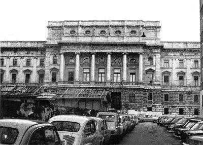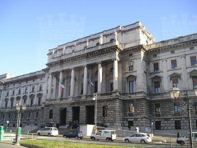 La struttura presenta una planimetria trapezoidale con corte interna e affaccio principale sul Foro Ulpiano, secondari su Via del Coroneo, Via della Fontana e Via Fabio Severo. Le facciate sono costituite da un alto basamento a robusto bugnato in pietra del Carso proveniente da una cava di Aurisina. Il basamento, solcato da due ordini di finestre, si conclude con una robusta cornice marcapiano in pietra. Sopra il basamento, i due piani superiori sono scanditi da semicolonne e paraste di ordine ionico in pietra proveniente dalle cave di Pola. Le facciata principale e quella laterale prospettante Via del Coroneo presentano un corpo centrale sporgente e sopraelevato, caratterizzato da un colonnato di ordine gigante ionico impostato su una balaustra. Le finestre del piano nobile sono sormontate da timpano, quelle in corrispondenza del colonnato della facciata sul Foro Ulpiano sono coronate da timpano spezzato su cui si innestano le aperture ovali del piano superiore. Le facciate terminano con una cornice marcapiano in pietra di Pola sostenuta da mensoline e timpani agli angoli. Le parti sopraelevate presentano aperture di forma ellittica nel sottotetto e sono sormontate da balaustre sul tetto. Sull'attico del corpo centrale aggettante sono collocate sei grandi statue di giuristi romani.