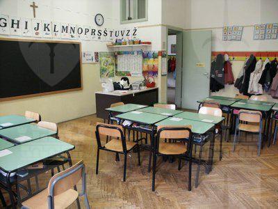 L'edificio in località Trebiciano è un fabbricato a due piani con ampio cortile sul retro, restaurato di recente si presenta in uno stile molto sobrio e lineare. Il problema delle scuole slovene fu molto sentito, soprattutto nelle zone rurali limitrofe la città, che, prive di idonei edifici scolastici, avevano più volte chiesto al Comune la possibilità di erigere i propri istituti. La scuola con insegnamento in lingua slovena fu alla fine realizzata con modestia di mezzi nel 1871 allorquando ne venne decretata la costruzione sul fondo N. Tav. 677. Negli anni cinquanta subì un primo intervento di restauro per i danni subiti durante il recente conflitto. Risale al 1972 il progetto di un nuovo muro di cinta e la posa di una stele con busto bronzeo di "Pinko Tomazic" in occasione della nuova denominazione della scuola elementare di Trebiciano per conto dell'associazione degli alunni della scuola stessa. Attualmente ospita la scuola elementare statale con lingua di insegnamento slovena P. Tomazic e la scuola elementare statale U. Polonio.