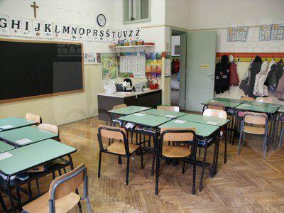 L'edificio in località Trebiciano è un fabbricato a due piani con ampio cortile sul retro, restaurato di recente si presenta in uno stile molto sobrio e lineare. Il problema delle scuole slovene fu molto sentito, soprattutto nelle zone rurali limitrofe la città, che, prive di idonei edifici scolastici, avevano più volte chiesto al Comune la possibilità di erigere i propri istituti. La scuola con insegnamento in lingua slovena fu alla fine realizzata con modestia di mezzi nel 1871 allorquando ne venne decretata la costruzione sul fondo N. Tav. 677. Negli anni cinquanta subì un primo intervento di restauro per i danni subiti durante il recente conflitto. Risale al 1972 il progetto di un nuovo muro di cinta e la posa di una stele con busto bronzeo di "Pinko Tomazic" in occasione della nuova denominazione della scuola elementare di Trebiciano per conto dell'associazione degli alunni della scuola stessa. Attualmente ospita la scuola elementare statale con lingua di insegnamento slovena P. Tomazic e la scuola elementare statale U. Polonio.