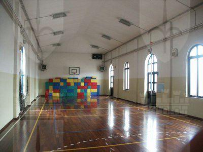 CORPO EDILIZIO PRINCIPALE Un abbassamento in intonaco grezzo protegge l'intonaco liscio di facciata dipinto in color rosso porpora. La facciata principale presenta al piano terra un finto bugnato liscio; paraste lisce rifinite ad intonaco suddividono la facciata in tre parti, mettendo in evidenza la porzione centrale, sovrastata dall'attico; un imponente marcapiano modanato rifinito ad intonaco mette in risalto la ripartizione orizzontale alla quota del solaio del primo piano; il coronamento modanato rifinito ad intonaco si collega senza soluzioni di continuità alla banchina; le lattonerie sono in lamiera verniciata color testa di moro e il manto di copertura si presenta in coppi curvi rossi uso Trieste. I fori architettonici del piano terra, disposti simmetricamente sulla facciata e tutti arcuati, sono collegati a livello dell'architrave da una modanatura ad intonaco posta a correre sulla lunghezza dell'intera facciata; i serramenti vetrati in PVC bianco presentano degli oscuranti metallici esterni verniciati color testa di moro e un sopraluce vetrato protetto da un'inferriata in ferro battuto decorato; la porta lignea a doppia anta di ingresso principale, presenta anch'essa un sopraluce e due specchiature vetrate, protette da inferriate in ferro battuto. I fori architettonici al primo piano, di forma rettangolare e di dimensioni costanti, sono messi in risalto da edicole in pietra bianca con architrave modanato, gocciolatoio sorretto da piccole mensole a voluta e specchiatura trattata ad intonaco bianco posta al di sotto della linea del davanzale, a sua volta messa in evidenza da una modanatura in intonaco posta a correre lungo l'intera dimensione della facciata; i serramenti in PVC a due ante a quattro specchiature con finta inglesina presentano oscuranti esterni ad anta in PVC color testa di moro, ad imitazione degli oscuranti uso Trieste; un balcone in pietra sorretto da quattro mensole decorate a voluta copre la larghezza dei tre fori architettonici centrali e presenta una balaustra in ferro battuto decorato; il foro centrale di porta-finestra di accesso al balcone è messo in evidenza da un timpano triangolare modanato. L'attico presenta tre fori finestra protetti da oscuranti esterni in PVC color testa di moro. I prospetti secondari sono trattati in maniera omogenea ma meno ricca di quello principale, con fori architettonici di dimensioni minori, soprattutto in corrispondenza dei servizi. La pavimentazione in battuto di graniglia e cemento copre tutte le superfici di calpestio del piano terra, mentre al primo piano gli spazi comuni sono pavimentati in marmette di graniglia cemento e le aule presentano un parquet ligneo disposto a spina di pesce. La scala con gradini in pietra bianca bulinata è protetta da una balaustra in ferro battuto decorato con corrimano ligneo. I paramenti murari intonacati color bianco mostrano un abbassamento in smalto murale in color rosa antico, mentre i soffitti nascondono le travature lignee a mezzo del tipico intonaco aggrappato su arelle lignee fissate alla struttura. I serramenti interni sono lignei di grandi dimensioni a doppia anta verniciata in color panna, a tre specchiature cieche. CORPO EDILIZIO SECONDARIO Le facciate sono trattate in maniera omogenea sui quattro lati, ad esclusione del maggior numero di fori presenti sull'affaccio nord-ovest, dove ampie porte-finestre archivoltate si alternano a più piccole finestre. Tutti i fori presentano una cornice ad arco ad intonaco modanata con chiave di volta liscia rifinita ad intonaco. Il paramento murario, le cui dimensioni sono scandite a ritmi regolari da paraste in finti conci ad intonaco grezzo, posti in corrispondenza delle strutture verticali in calcestruzzo armato, presentano un tamponamento esterno in laterizio facciavista e un basamento in intonaco grezzo che protegge il paramento murario dagli agenti atmosferici. La banchina trattata ad intonaco supporta lattonerie in lamiera verniciata color testa di moro. Il manto della copertura a falde è composto da coppi curvi rossi uso Trieste.