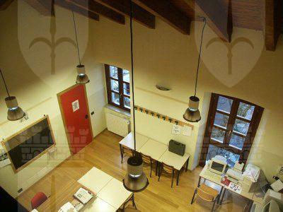 CORPO DI FABBRICA PRINCIPALE Fascia basamentale rivestita in pietra di Aursina a conci squadrati e corsi regolari orizzontali con finitura a spacco di cava. Fori architettonici con piattabanda interna ad arco ribassato e con cornici esterne in pietra di Aurisina bulinata; serramenti esterni vetrati lignei a doppia anta con sei specchiature vetrate, verniciati al naturale, di recente fattura. Superficie di facciata rifinita ad intonaco liscio sino all'intradosso di copertura; banchina in lastre di pietra di Aurisina, gronde e pluviali in lamiera verniciata esterni alla muratura perimetrale; manto di copertura in coppi curvi rossi uso Trieste. Pavimentazione interna in legno, in listoni a correre, di fattura uniforme in tutti gli ambienti. Scala interna con gradini in pietra calcarea e pianerottoli di interpiano in lastre di pietra bocciardata; parapetto metallico verniciato con corrimano ligneo. Superfici murarie trattate ad intonaco pitturato color bianco con abbassamento in smalto murale grigio chiaro. Serramenti interni di recente fattura con pannellature rifinite in laminato plastico. Spazio del sottotetto con ampia vetrata in cristallo di sicurezza, affacciata sugli spazi delle aule sottostanti. PORTICATO ESTERNO Porticato esterno con struttura verticale ed orizzontale lignea; copertura a doppia orditura con travatura principale perimetrale a correre e travatura secondaria trasversale con tavolato e manto in lamiera verniciata. Superficie di calpestio in tavolato ligneo verniciato naturale, posizionato in senso trasversale e parapetto metallico verniciato grigio. CORPO DI FABBRICA SECONDARIO Finiture molto simili a quelle del corpo principale. Basamento in pietra bianca a conci integrati nella muratura (non a rivestimento), fori architettonici rifiniti ad intonaco con davanzale in pietra calcarea, serramenti esterni lignei verniciati al naturale a doppia anta a sei specchiature con sopraluce bipartito; orditura principale e secondaria di copertura e tavolato ligneo a vista in corrispondenza dello sporto di gronda. Le superfici murarie interne risultano integralmente intonacate in colore bianco; la sala destinata ad uso palestra, presenta un pavimento rifinito in parquet ligneo; le altre superfici orizzontali risultano rifinite in piastrelle di ceramica a giunti uniti.
